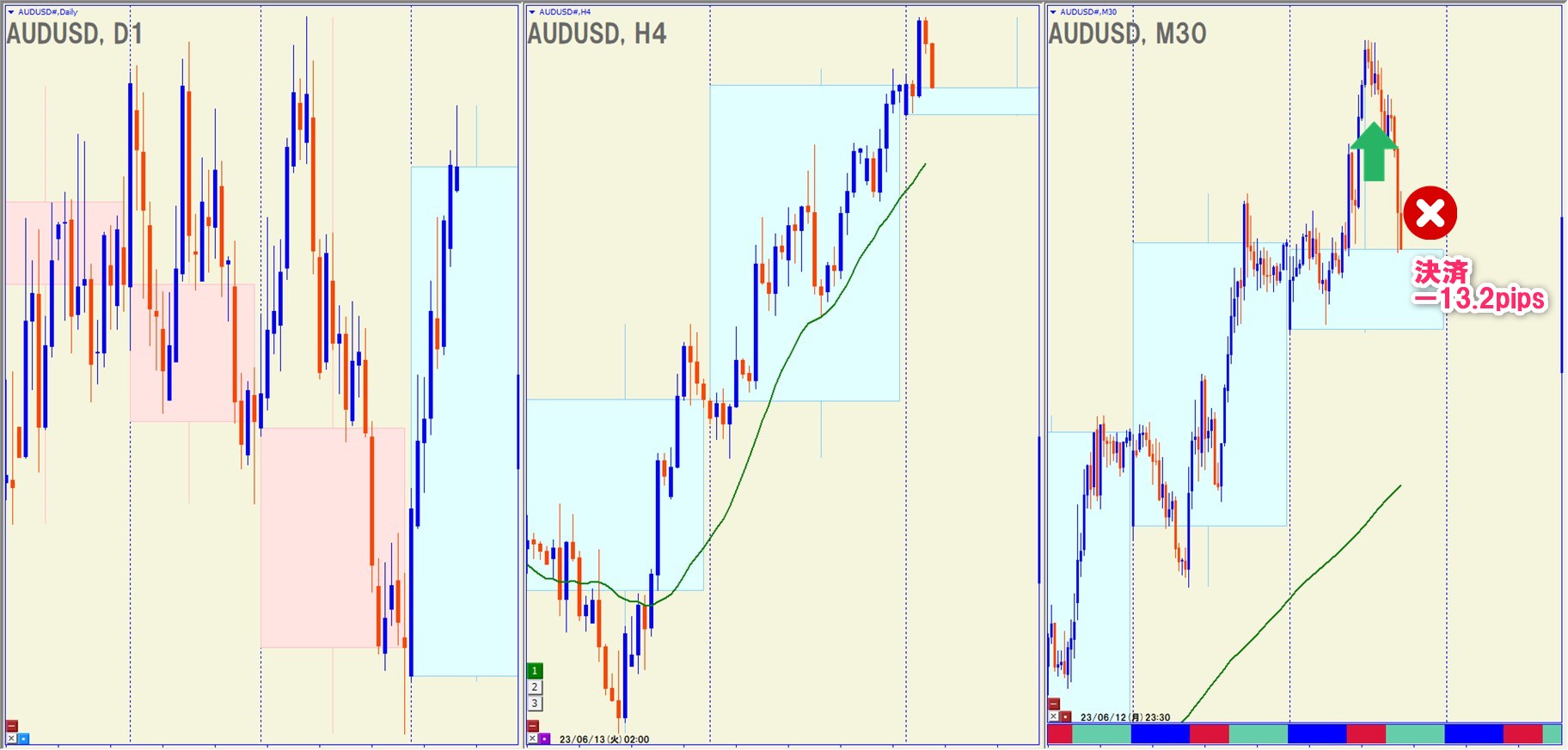 2023.6.12(月)17:00 AUDUSD ロング -13.2pips