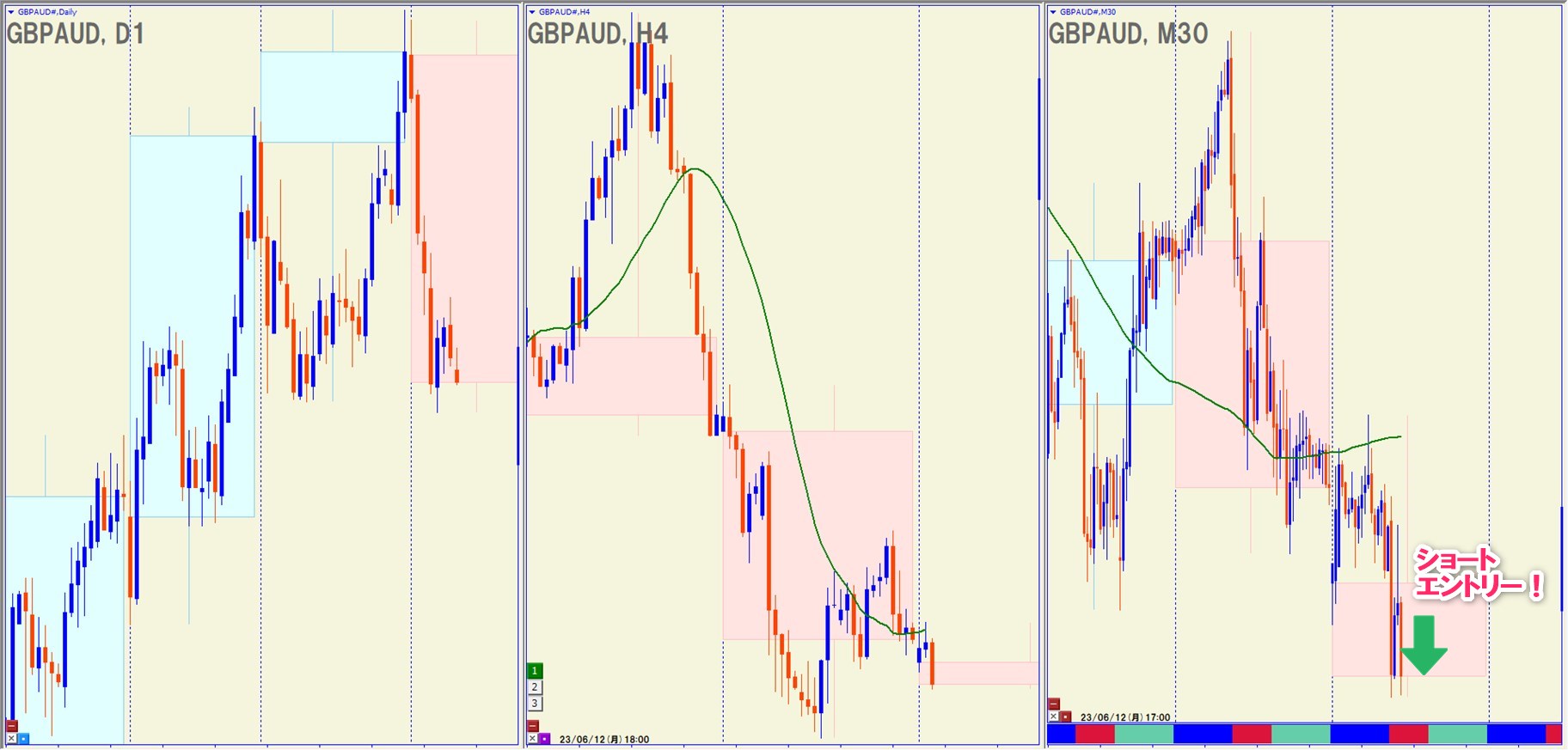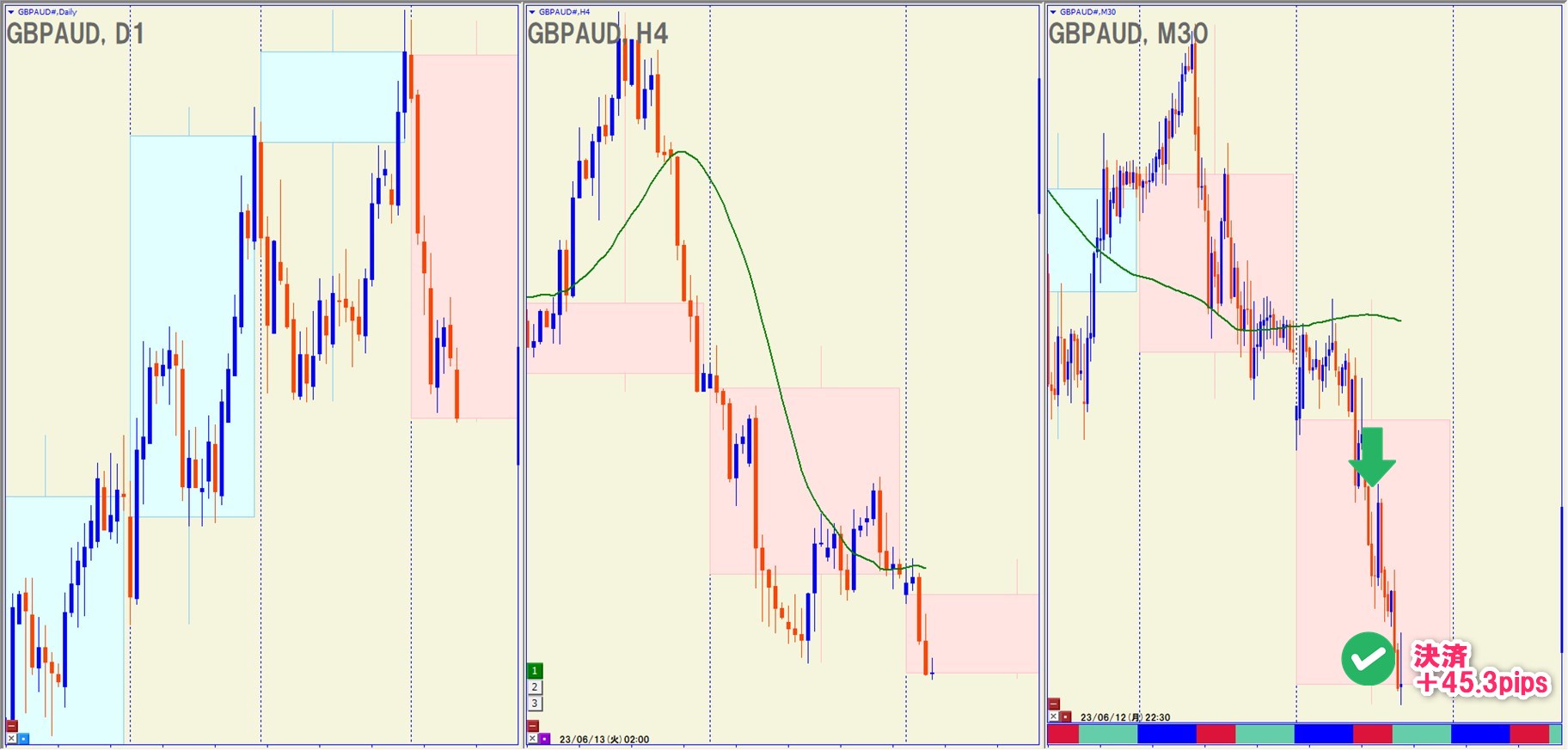 2023.6.12(月)17:00 GBPAUD ショート +45.3pips