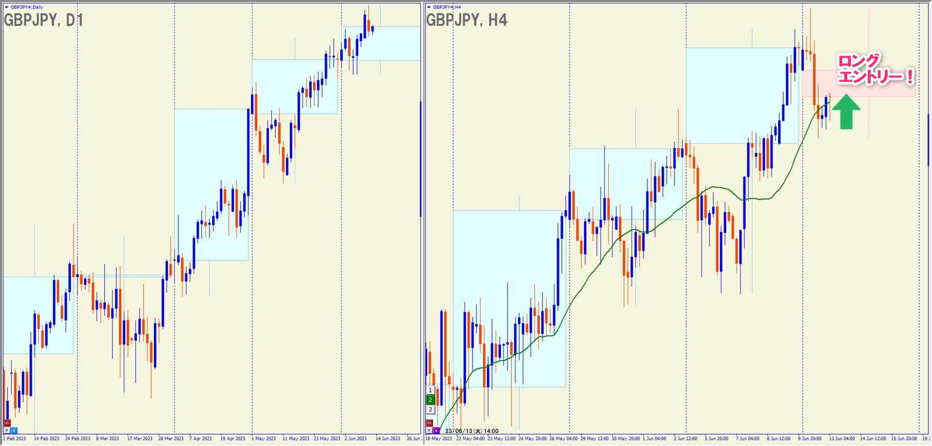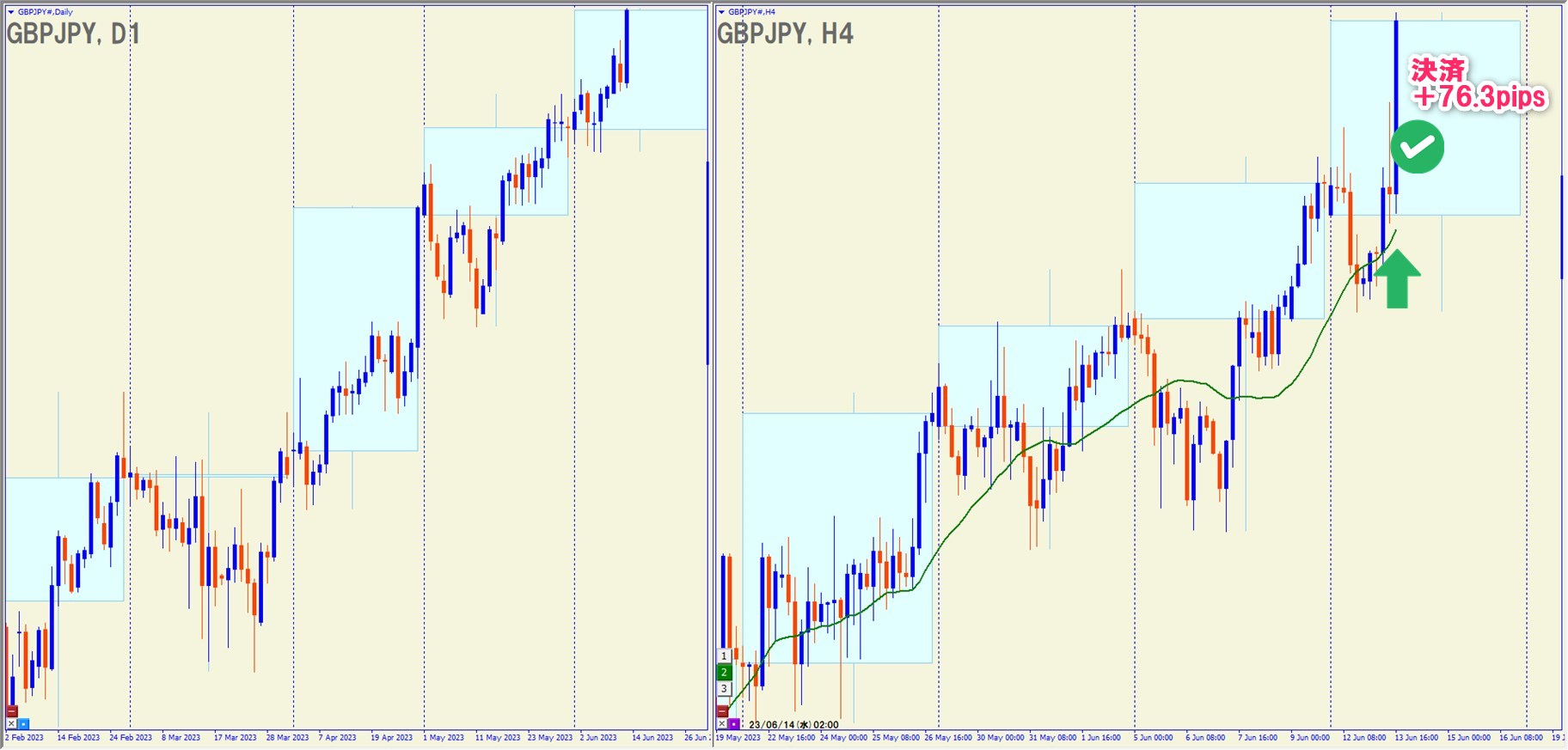 2023.6.13(火)14:00 GBPJPY ロング +76.3pips