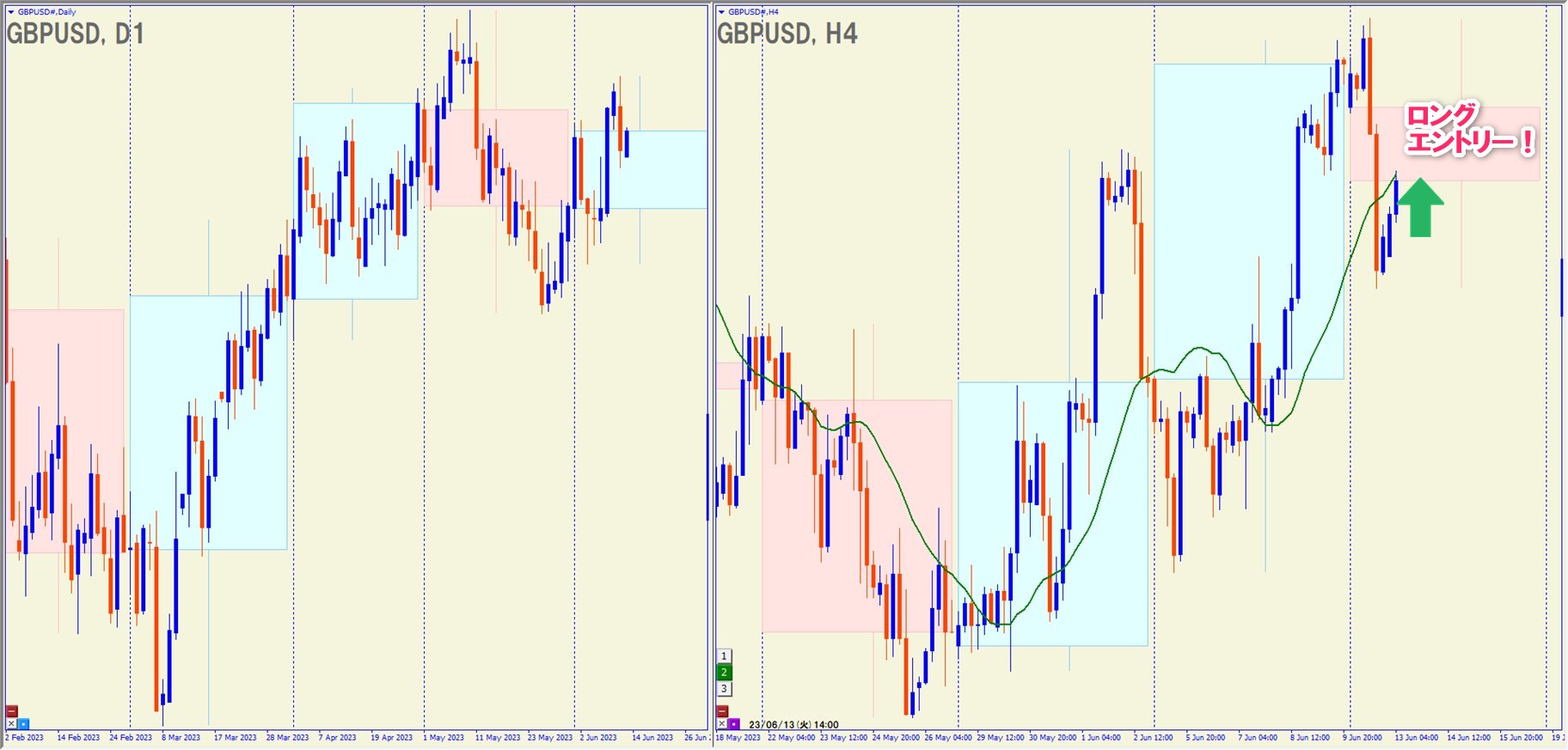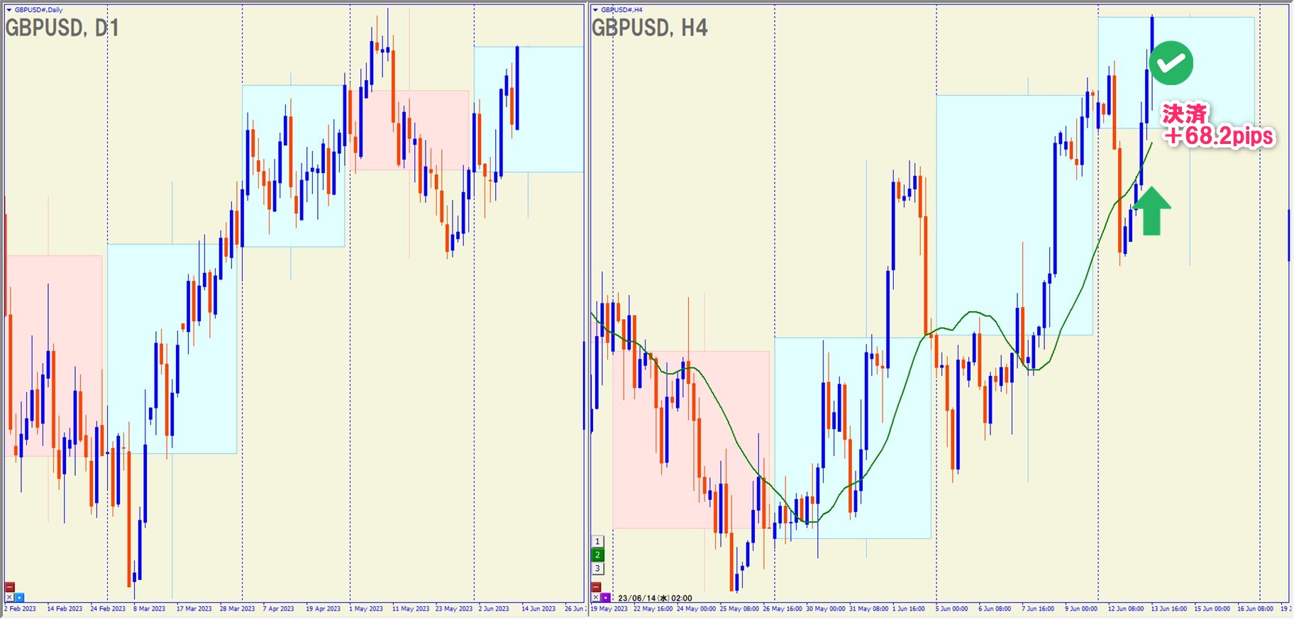 2023.6.13(火)14:00 GBPUSD ロング +68.2pips