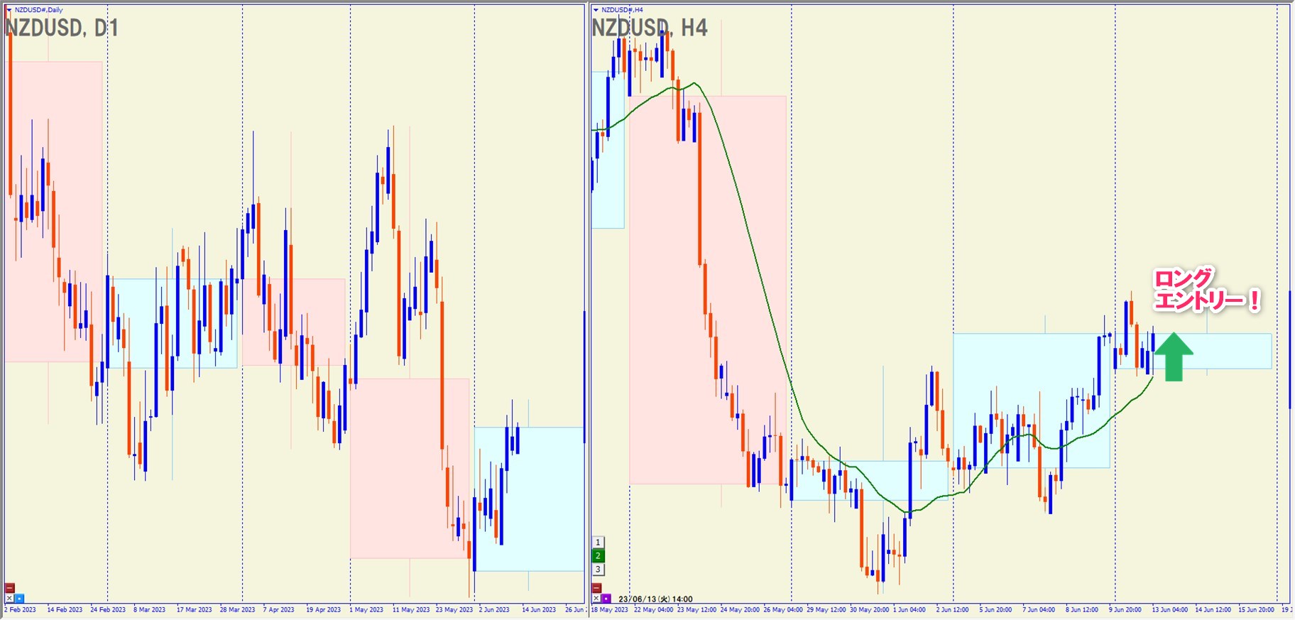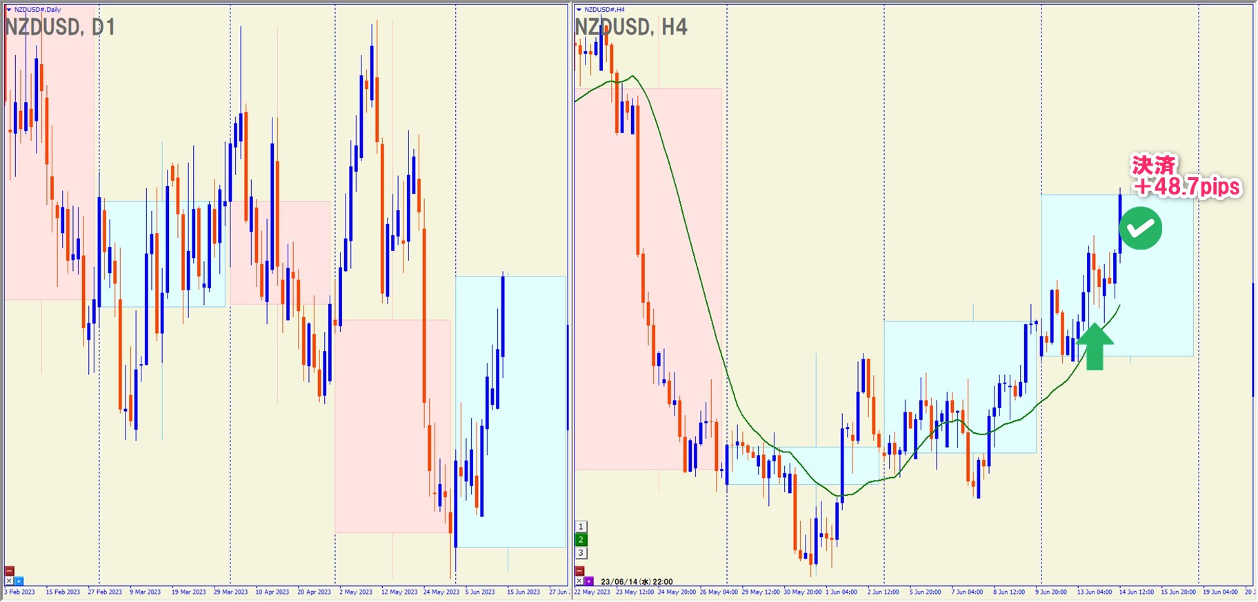 2023.6.13(火)14:00 NZDUSD ロング +48.7pips