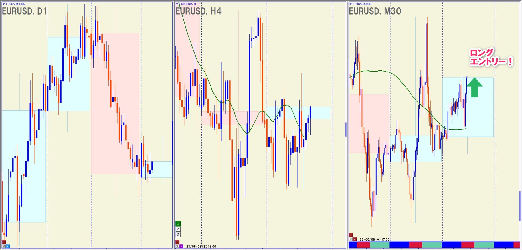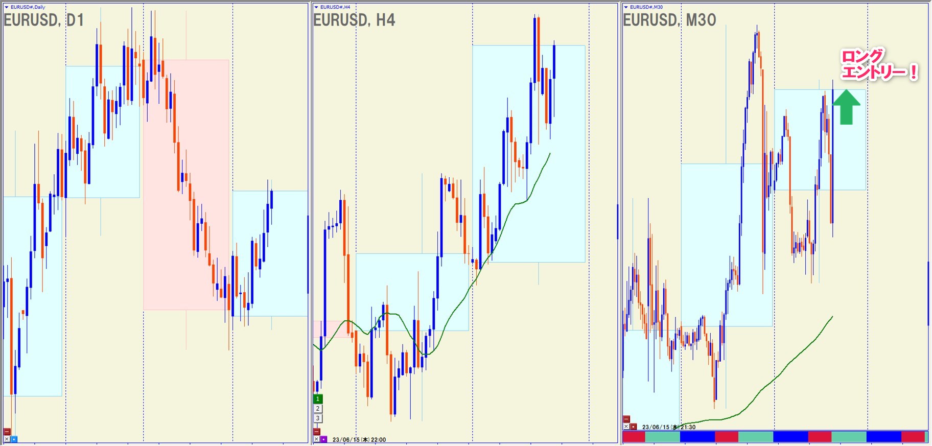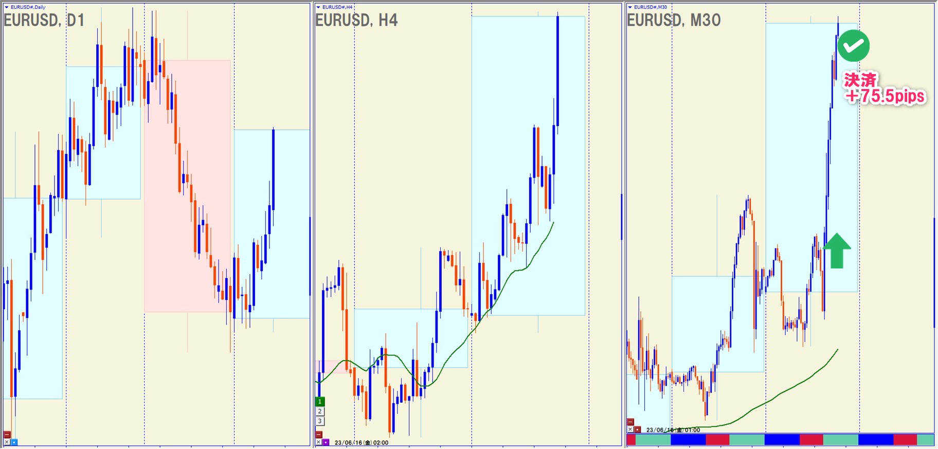 2023.6.15(木)21:30 EURUSD ロング +75.5pips