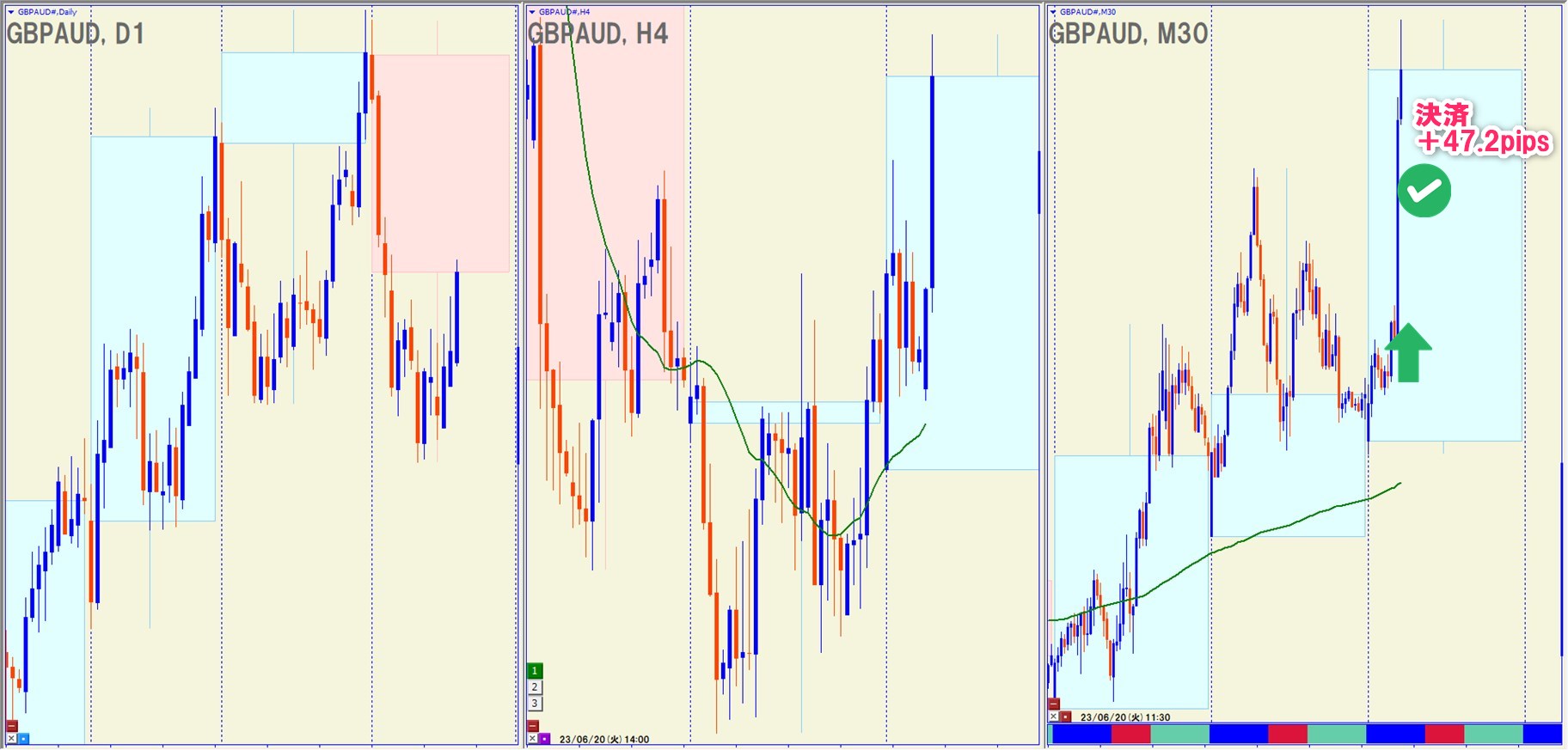 2023.6.20(火)10:00 GBPAUD ロング +47.2pips