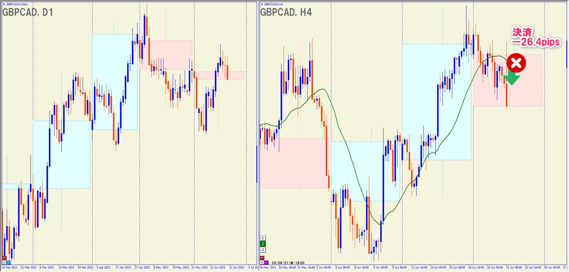 2023.6.21(水)14:00 GBPCAD ショート -26.4pips