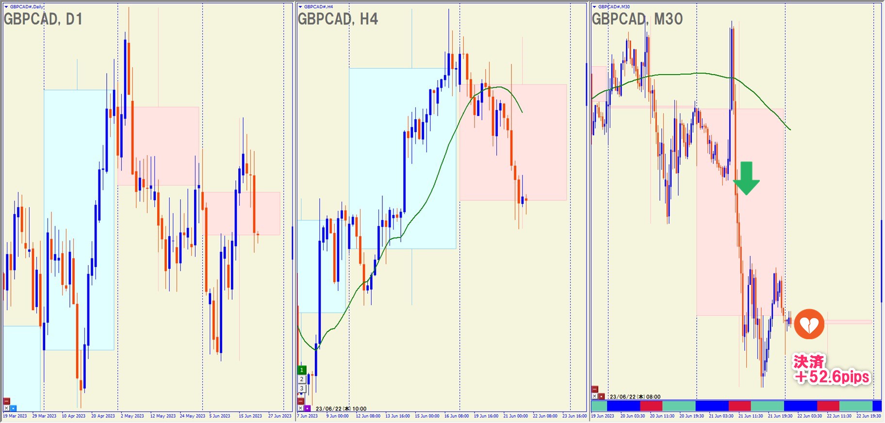 2023.6.21(水)17:00 GBPCAD ショート +52.6pips
