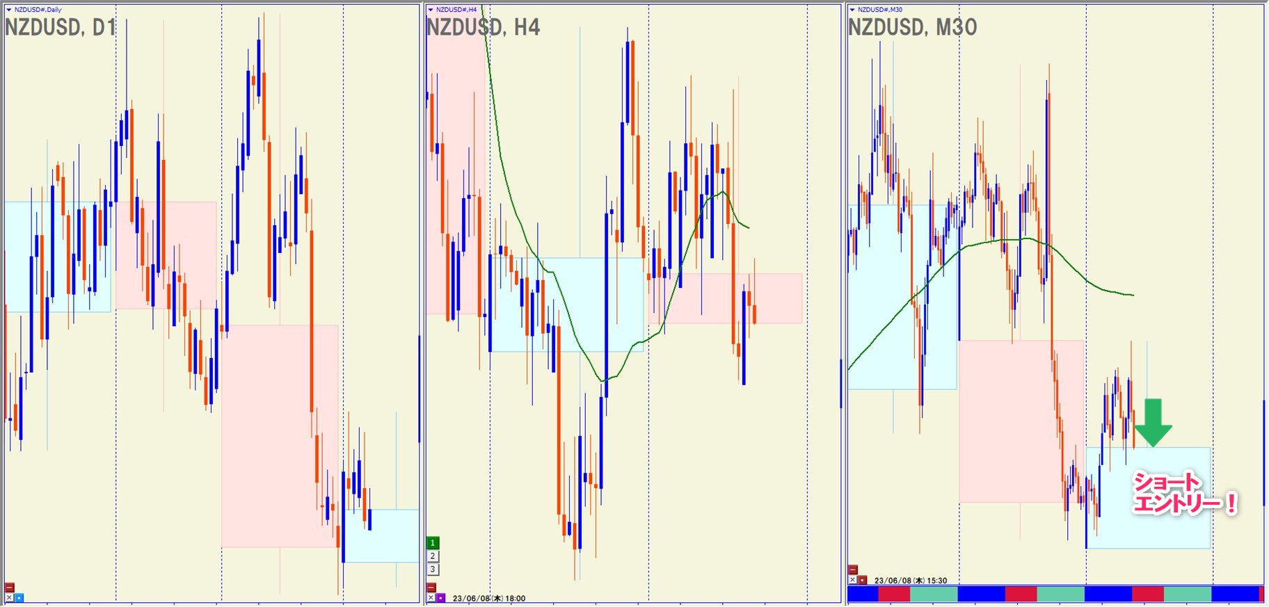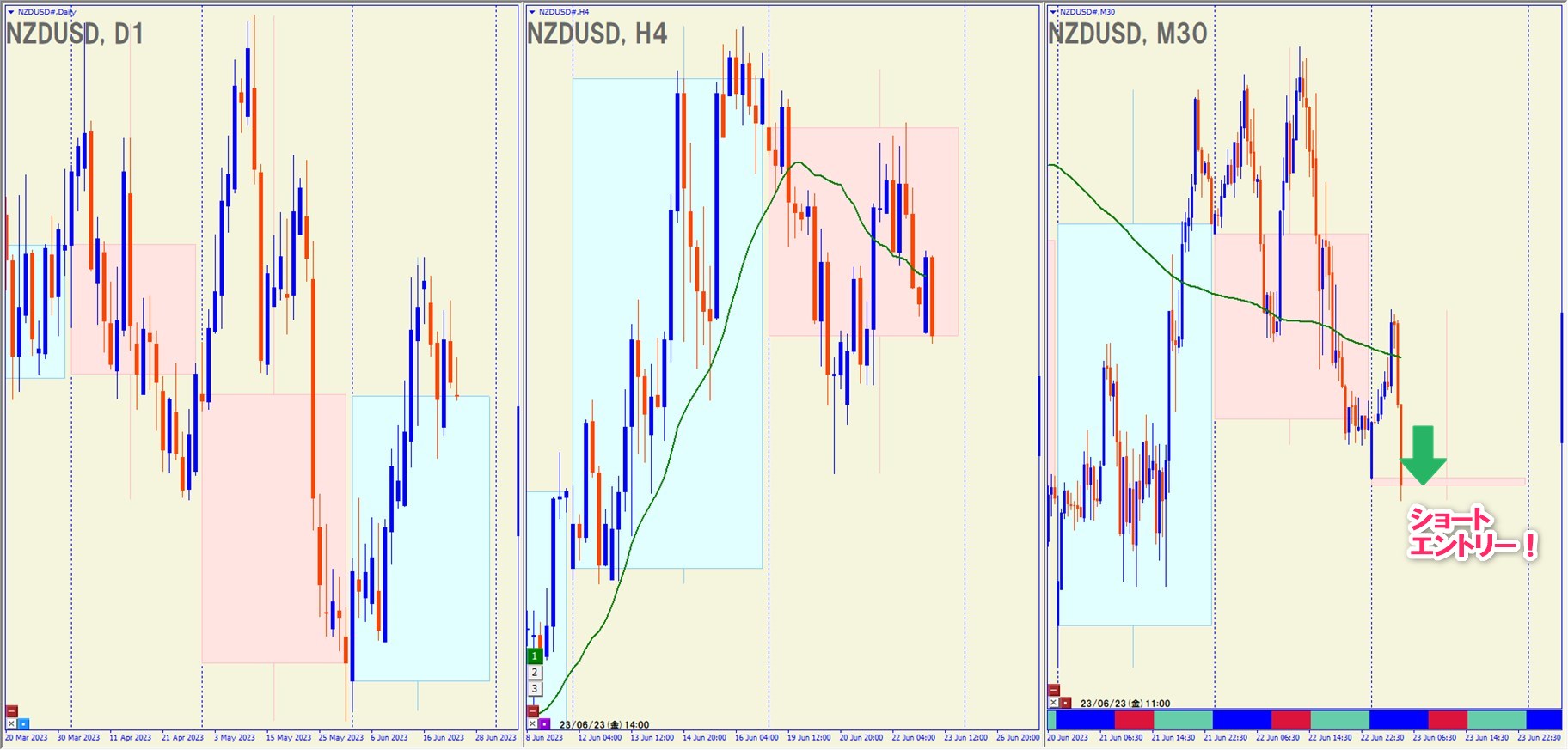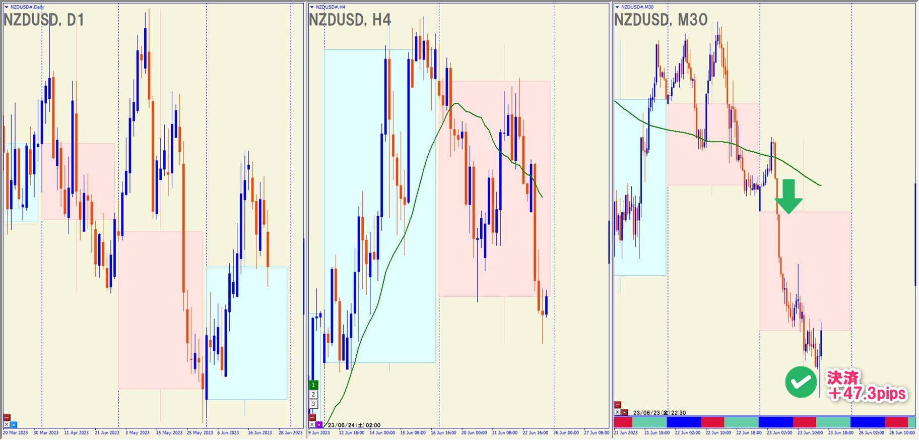 2023.6.23(金)11:00 NZDUSD ショート +47.3pips