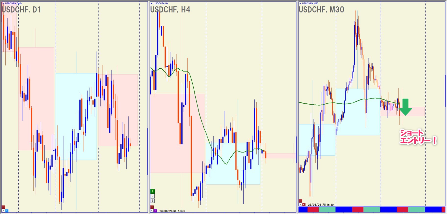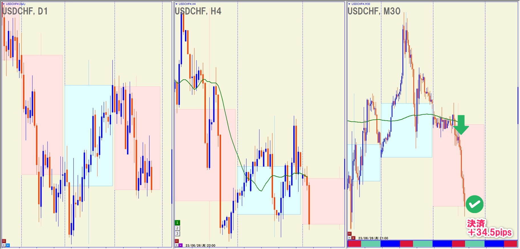 2023.6.26(月)16:30 USDCHF ショート +34.5pips