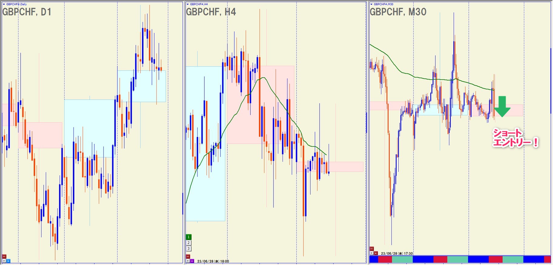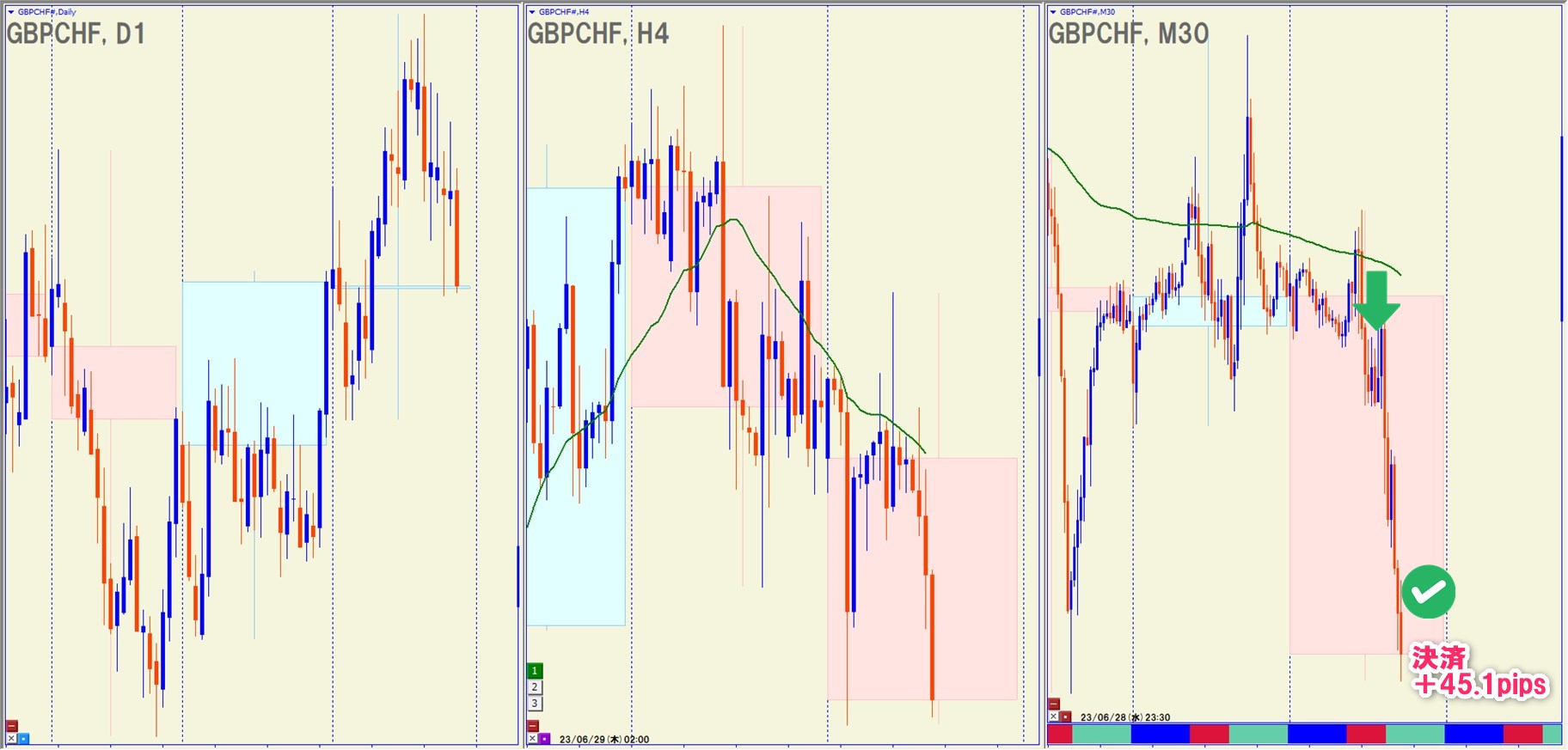 2023.6.28(水)17:30 GBPCHF ショート +45.1pips