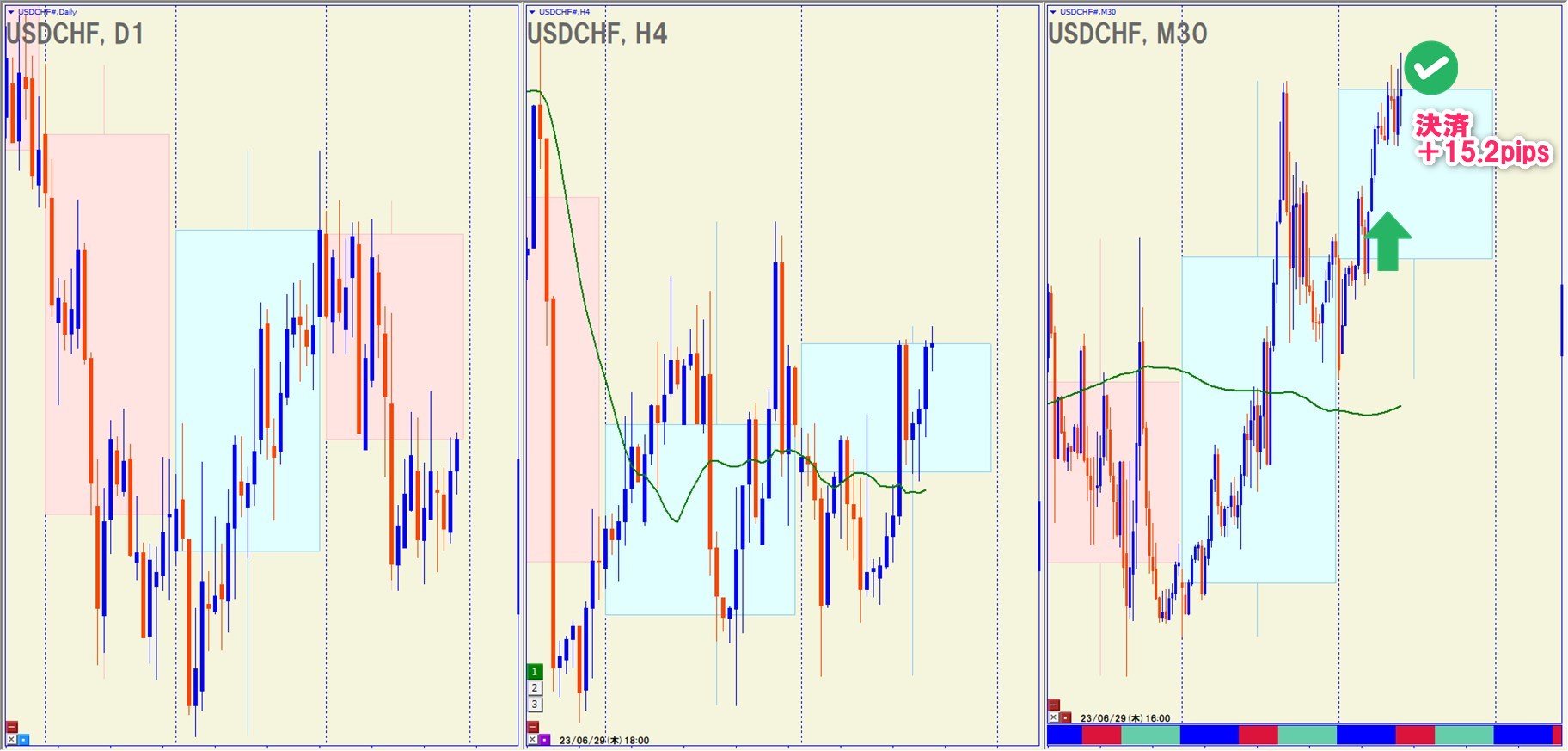 2023.6.29(木)11:00 USDCHF ロング +15.2pips