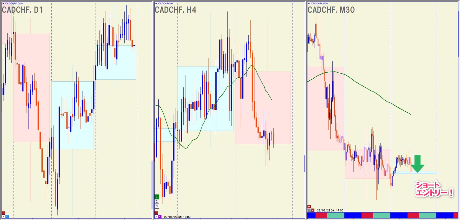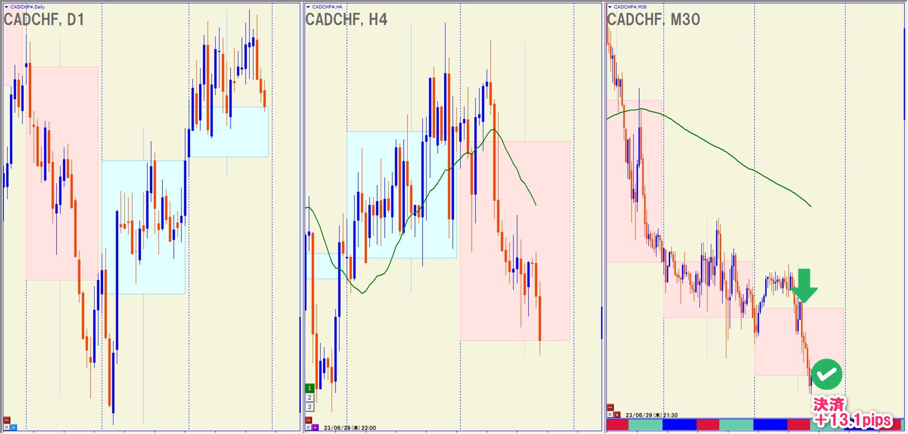 2023.6.29(木)17:00 CADCHF ショート +13.1pips