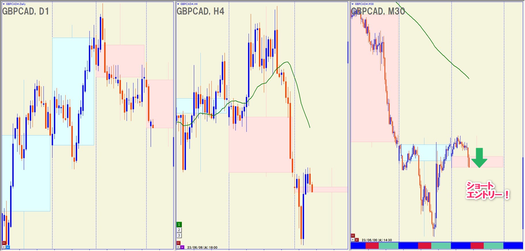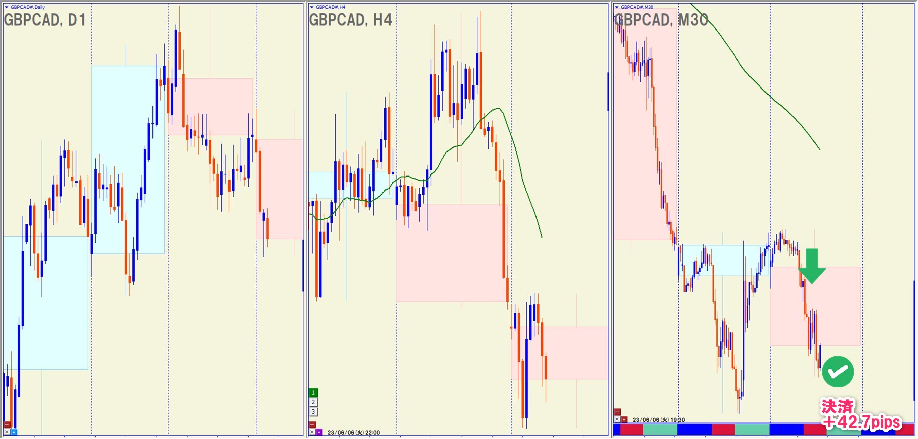 2023.6.6(火)14:30 GBPCAD ショート +42.7pips