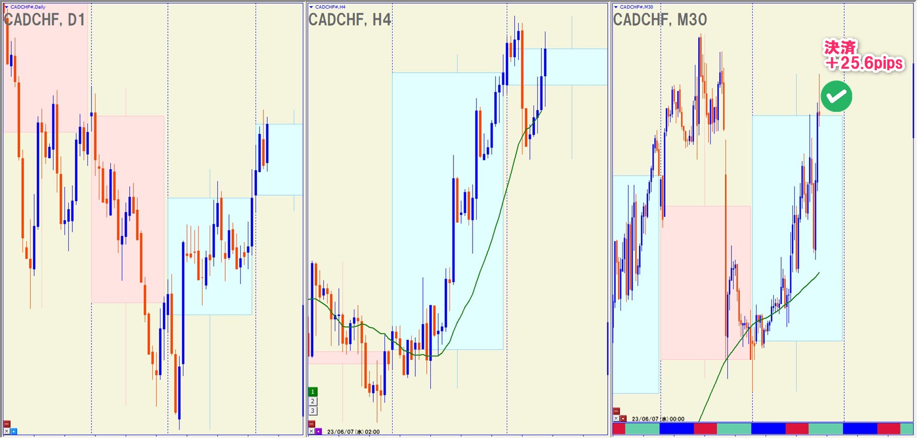 2023.6.6(火)16:30 CADCHF ロング +25.6pips