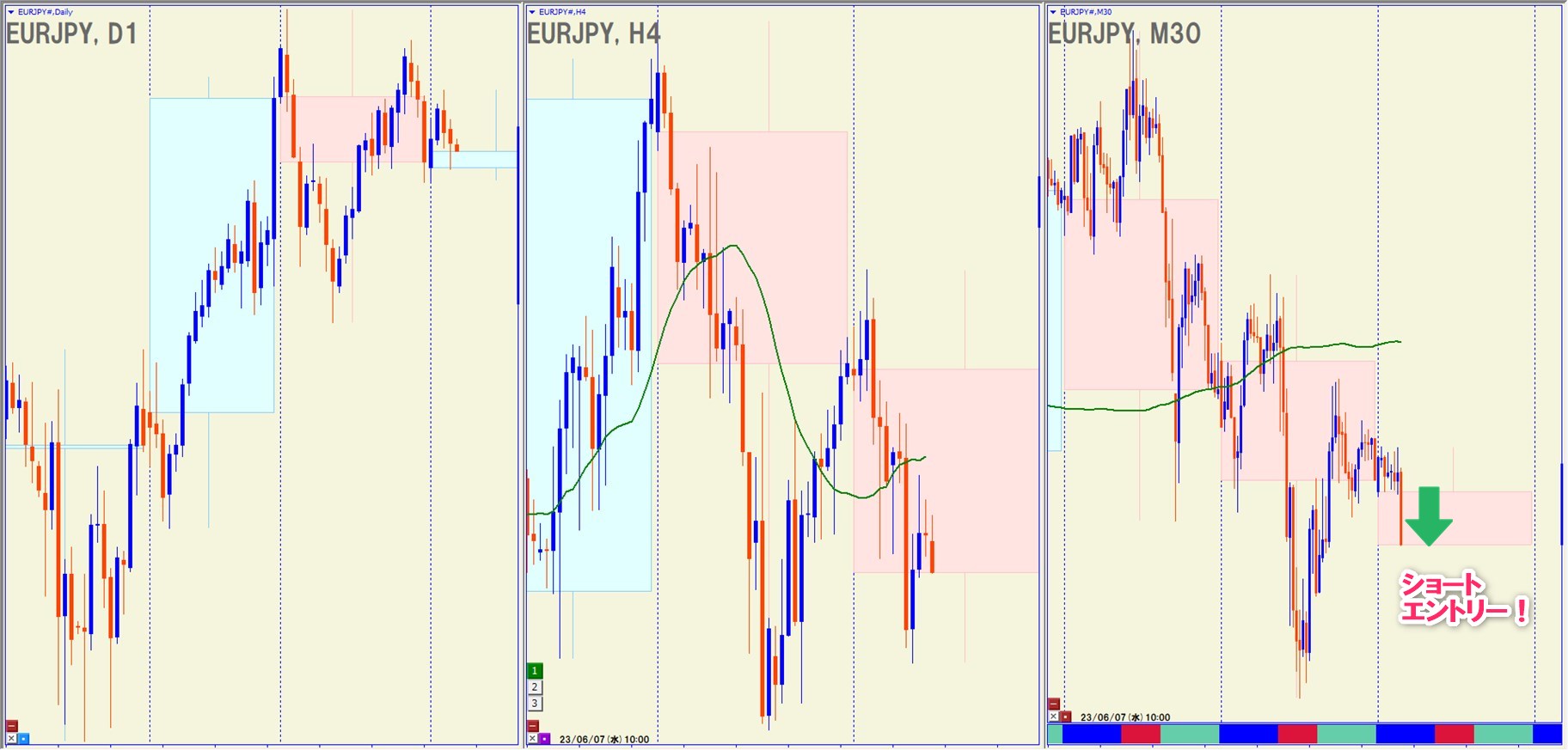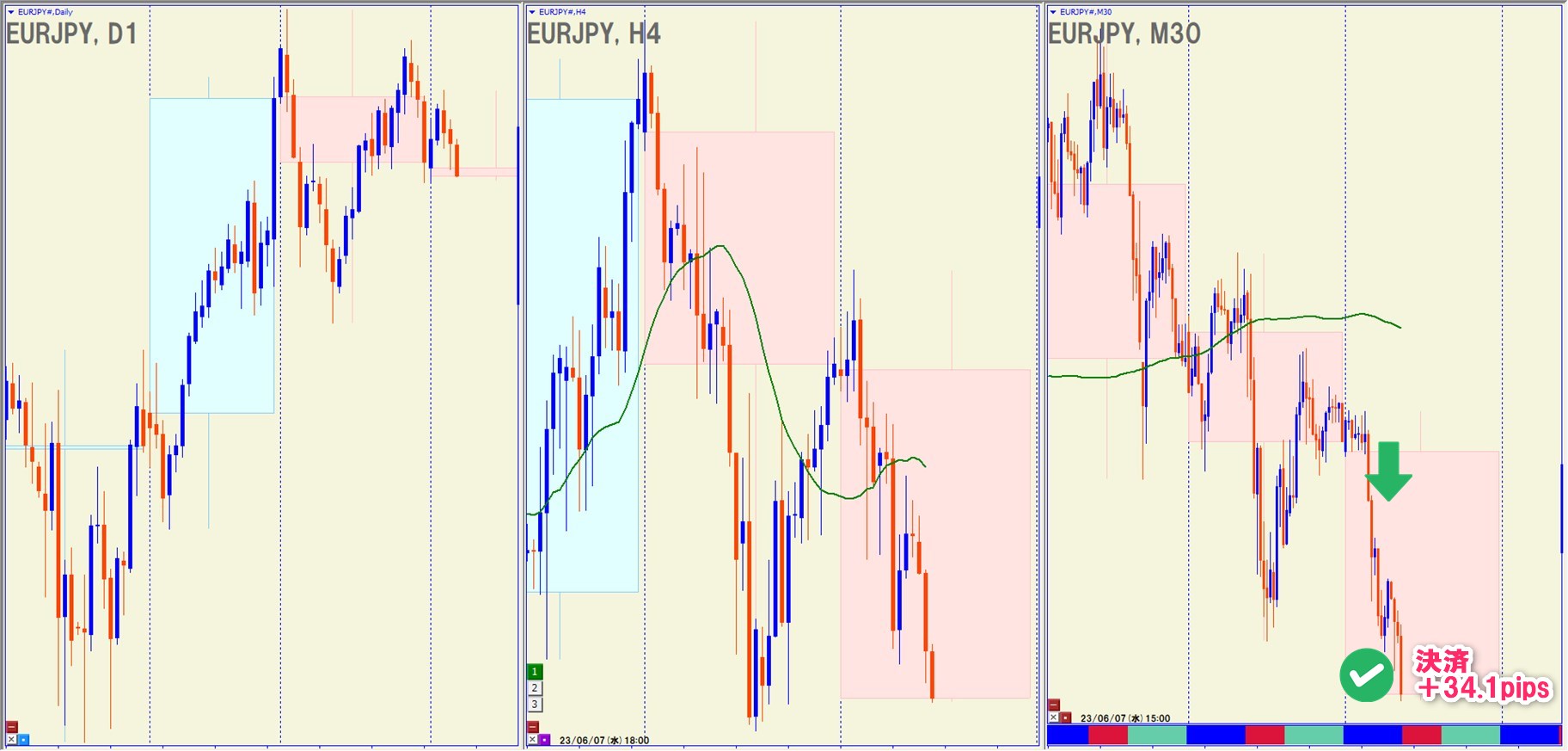 2023.6.7(水)10:00 EURJPY ショート +34.1pips