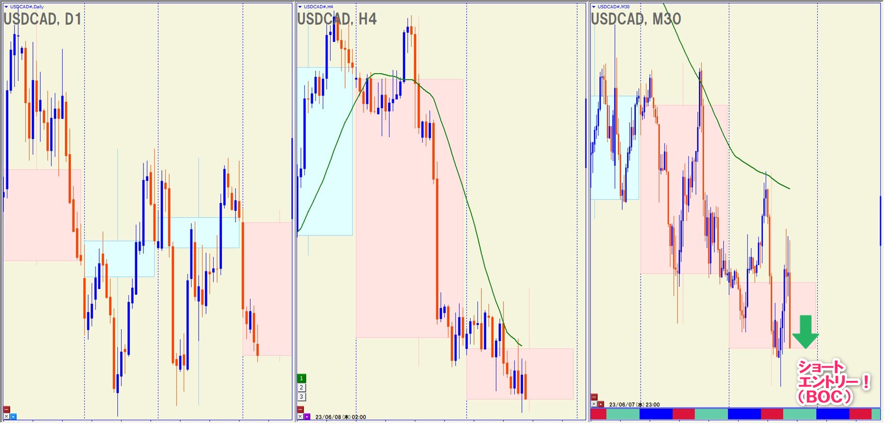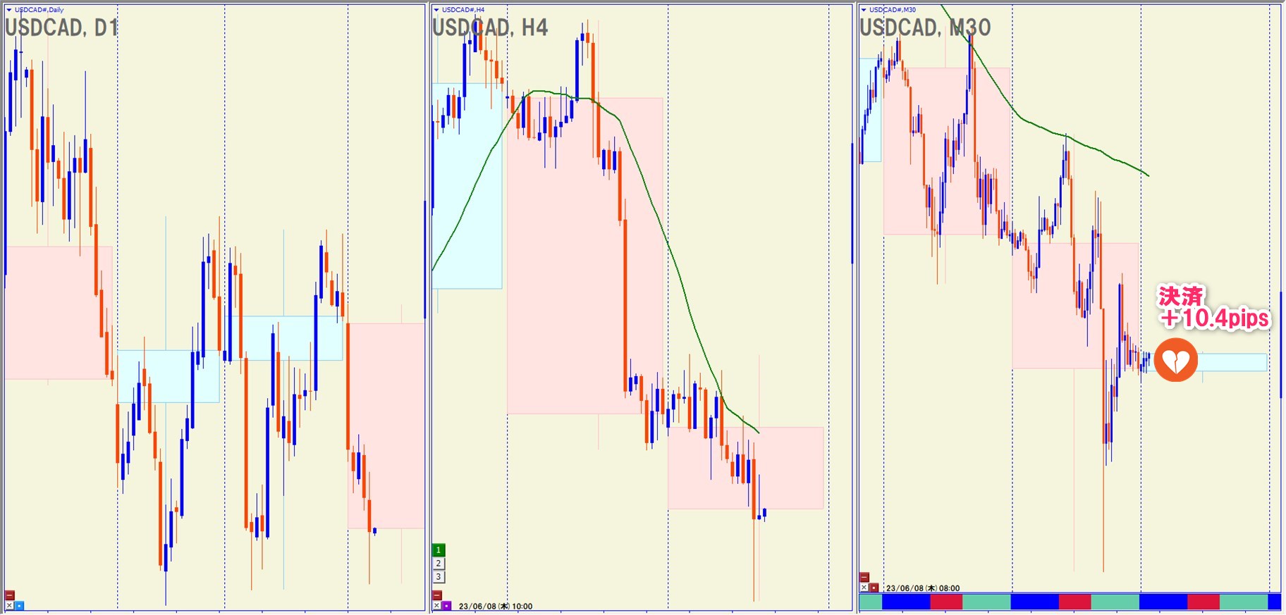 2023.6.7(水)23:00 USDCAD ショート +10.4pips