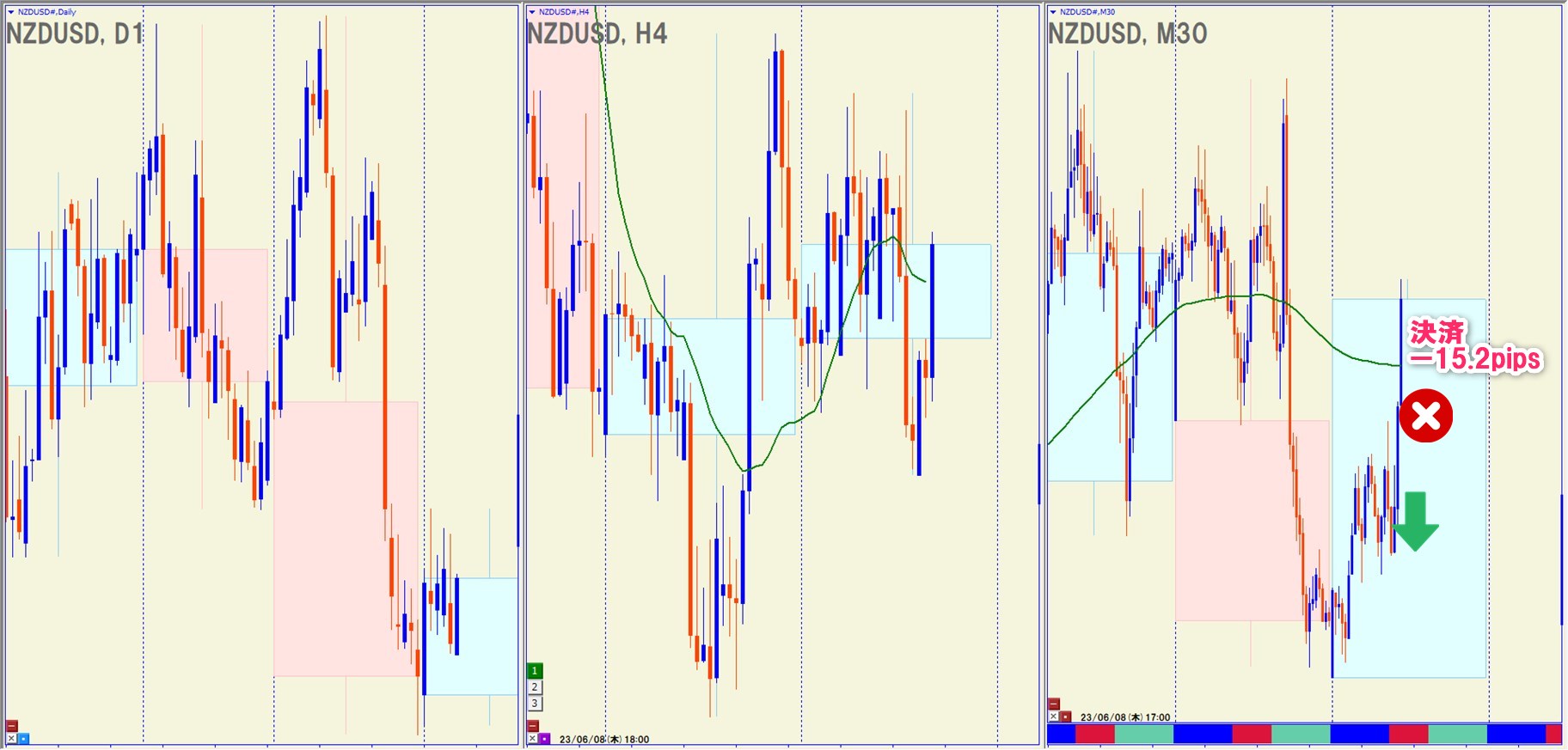 2023.6.8(木)15:30 NZDUSD ショート -15.2pips