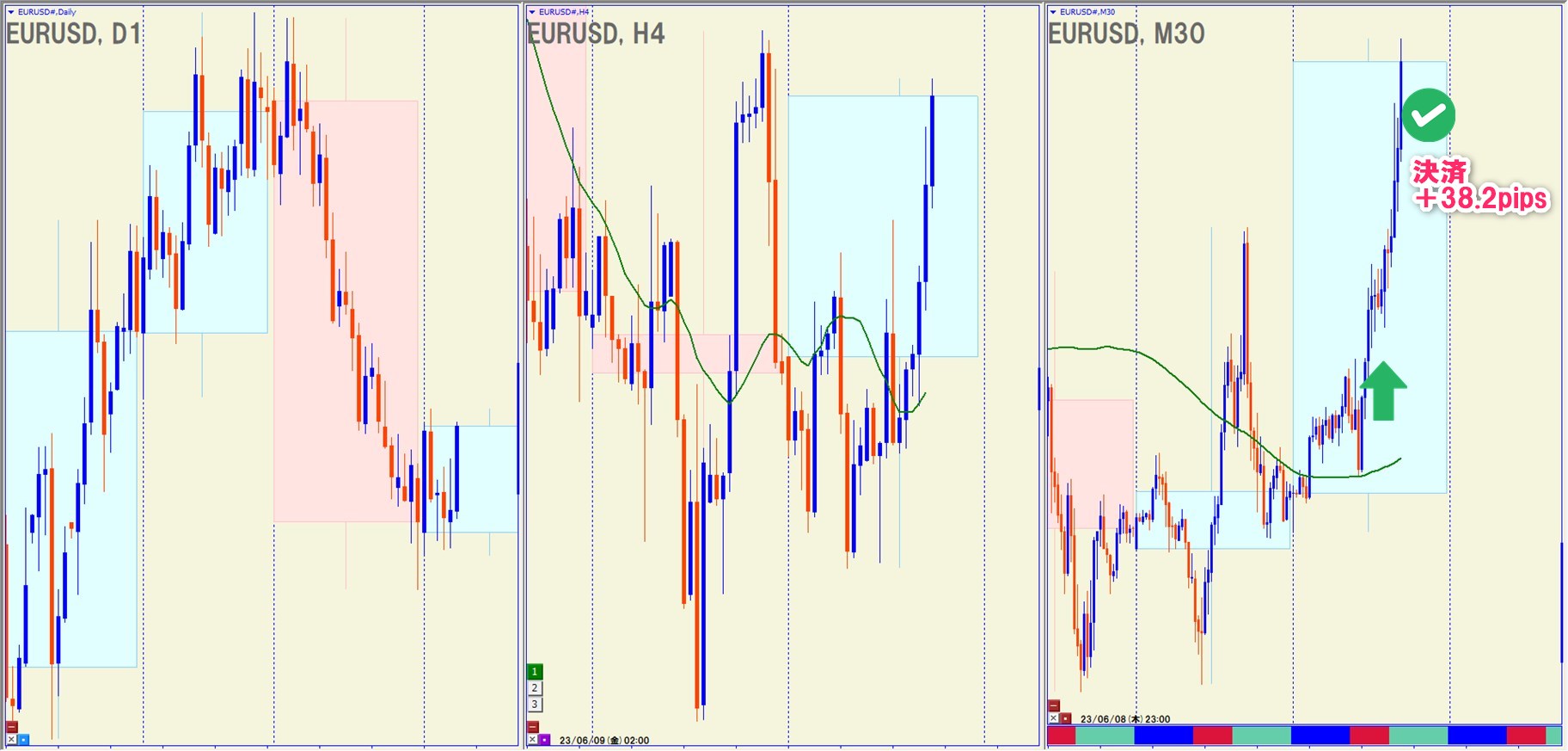 2023.6.8(木)17:30 EURUSD ロング +38.2pips