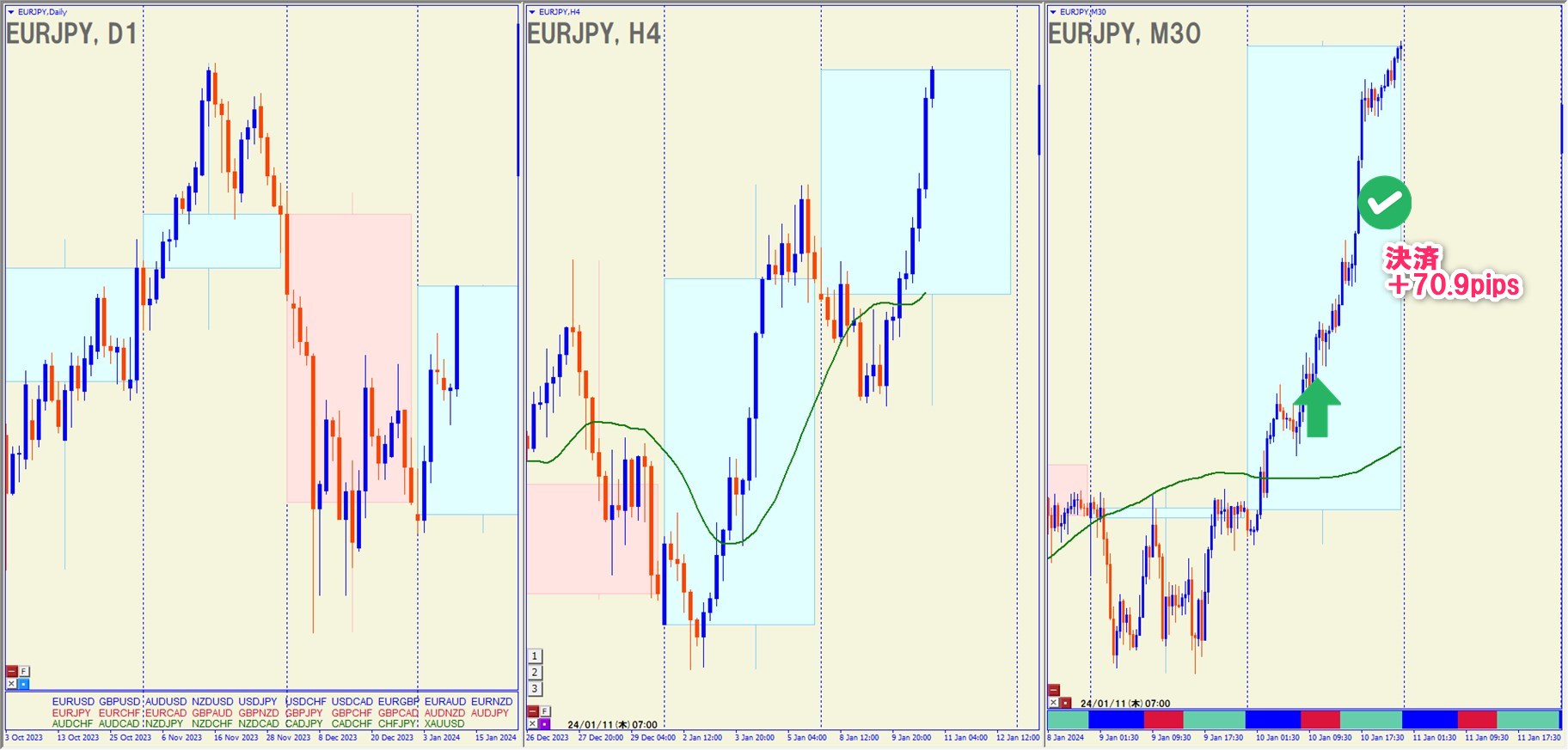 2024.1.10(水)16:00 EURJPY ロング +70.9pips