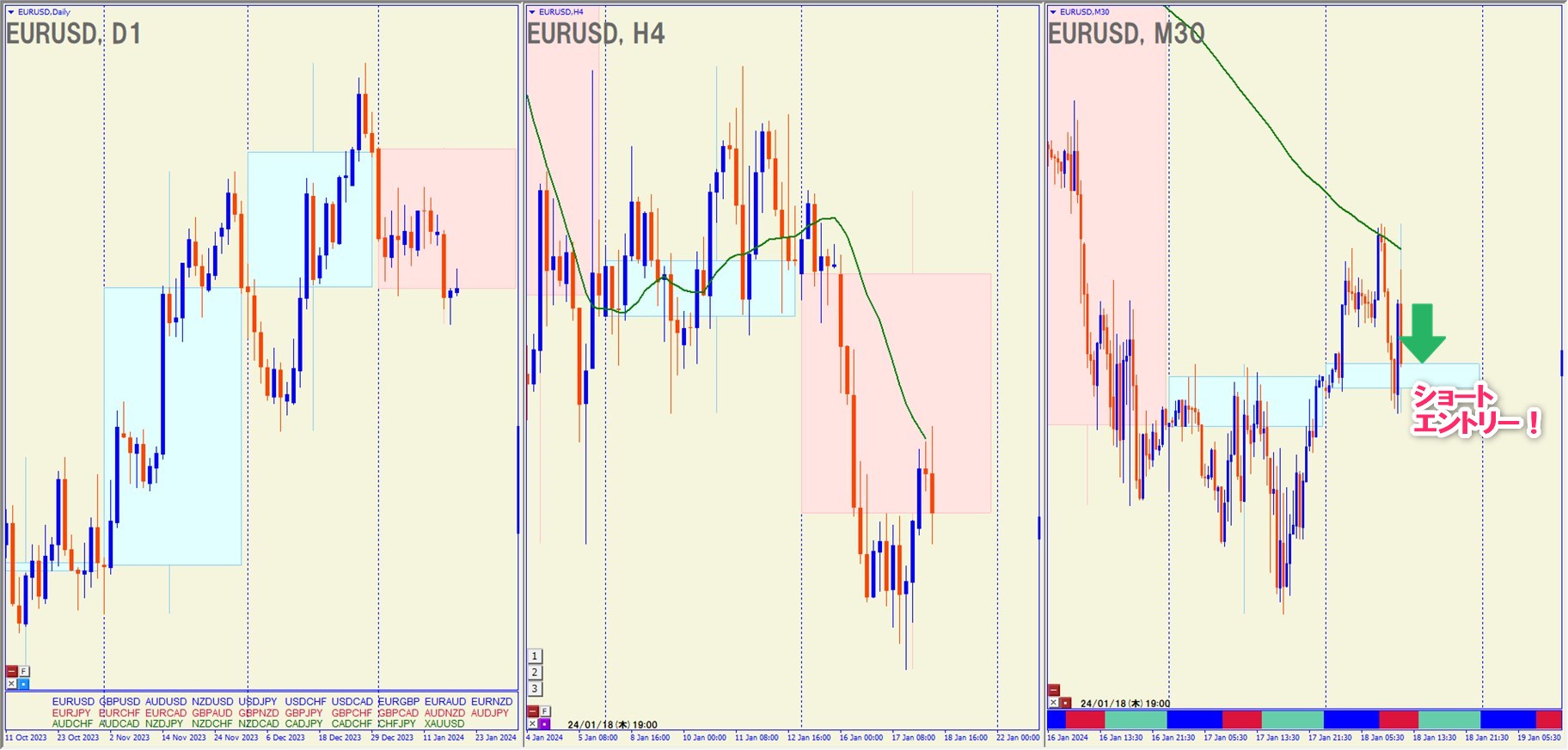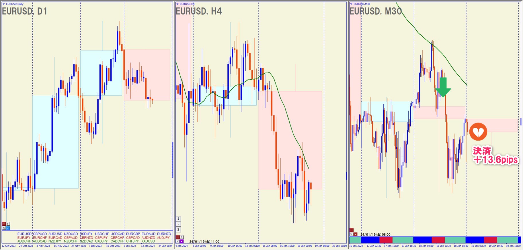 2024.1.18(木)19:00 EURUSD ショート +13.6pips