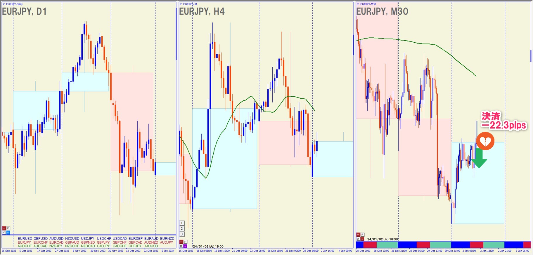 2024.1.2(火)17:30 EURJPY ショート -22.3pips