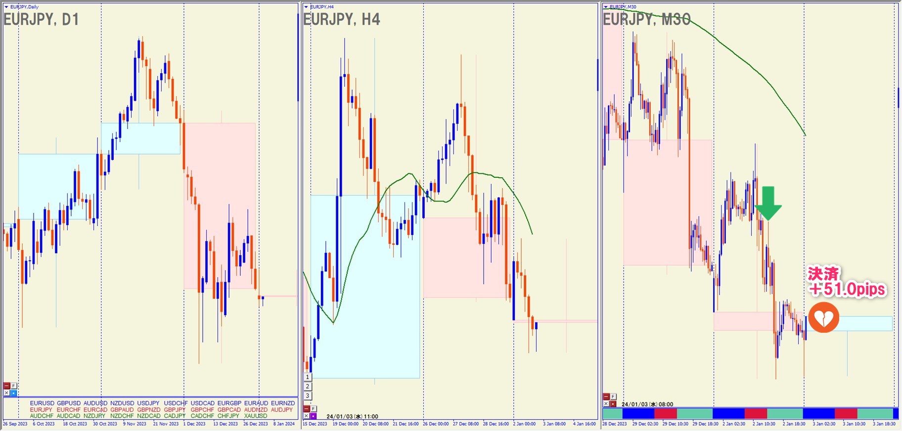 2024.1.2(火)19:00 EURJPY ショート +51.0pips