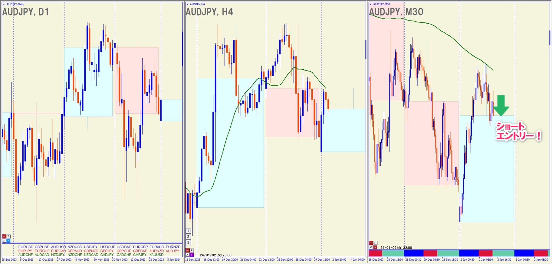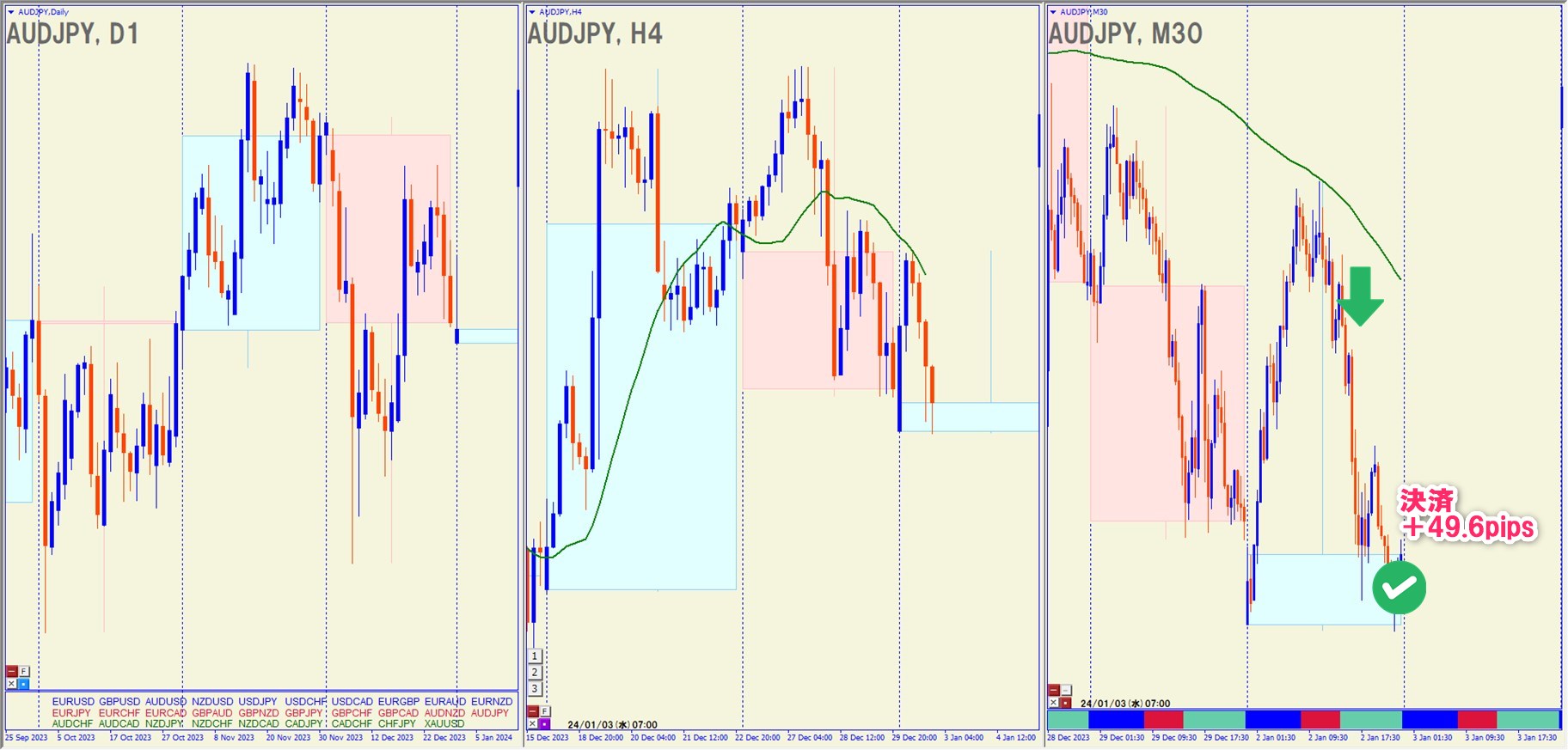 2024.1.2(火)22:00 AUDJPY ショート +49.6pips