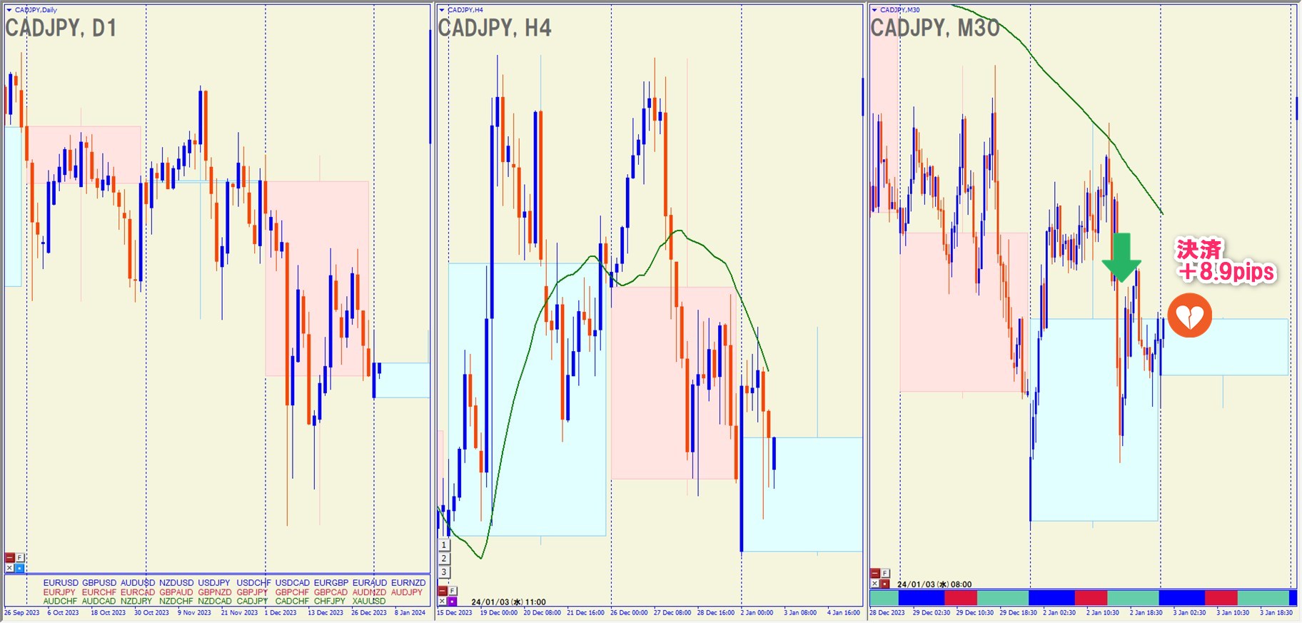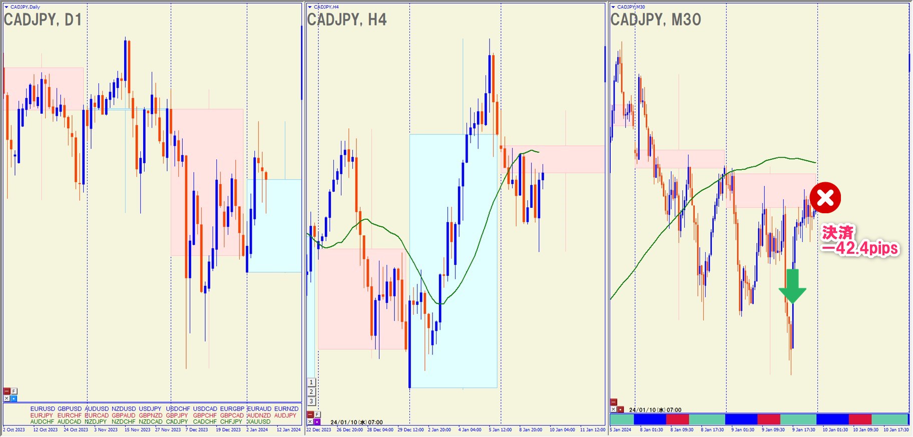 2024.1.9(火)23:00 CADJPY ショート -42.4pips