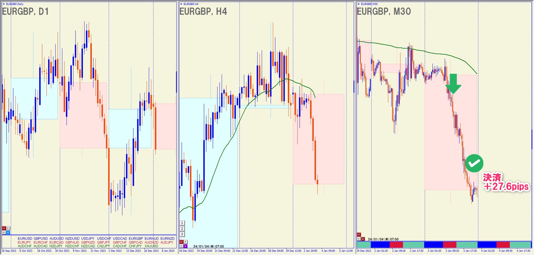2024.1.3(水)17:30 EURGBP ショート +27.6pips
