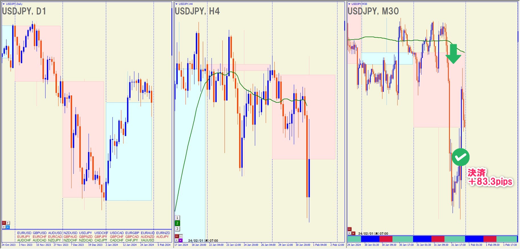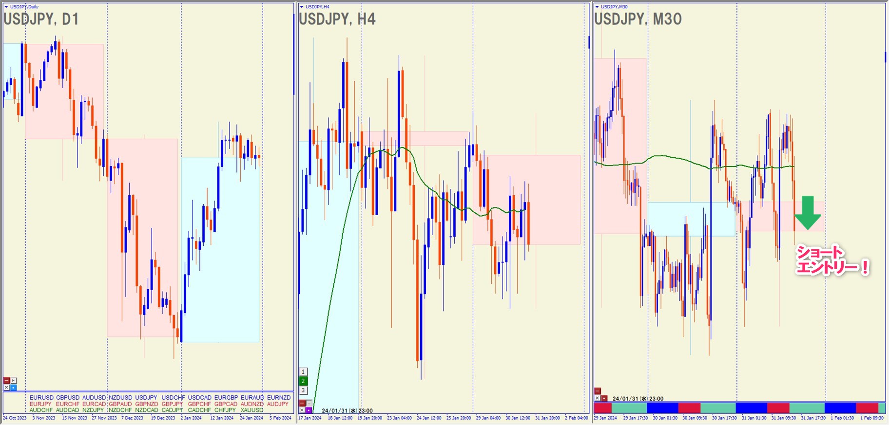 2024.1.31(水)23:00 USDJPY ショート +83.3pips