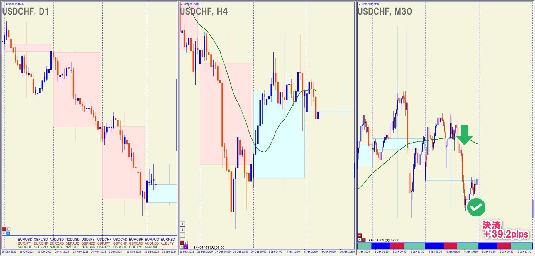 2024.1.8(月)22:00 USDCHF ショート +39.2pips