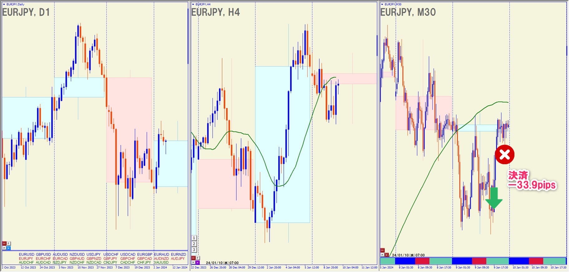 2024.1.9(火)23:00 EURJPY ショート -33.9pips