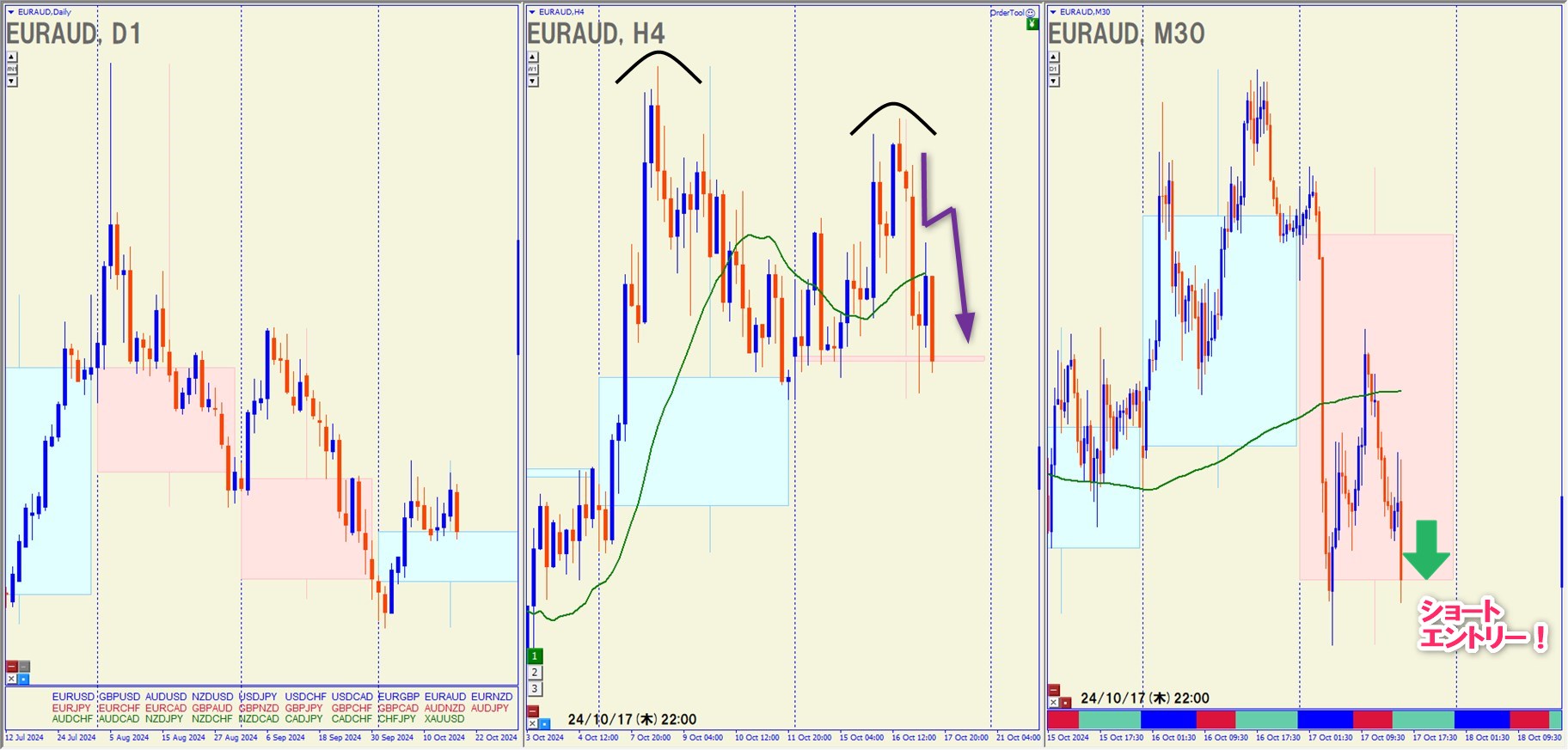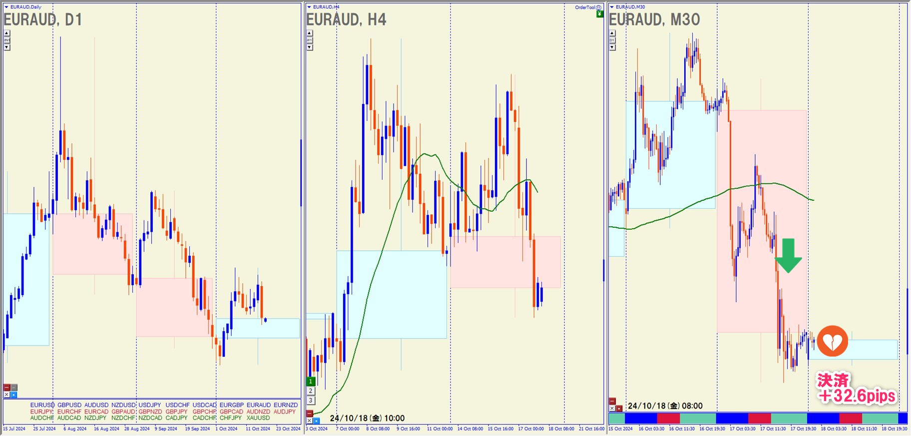 2024.10.17(木)22:00 EURAUD ショート +32.6pips