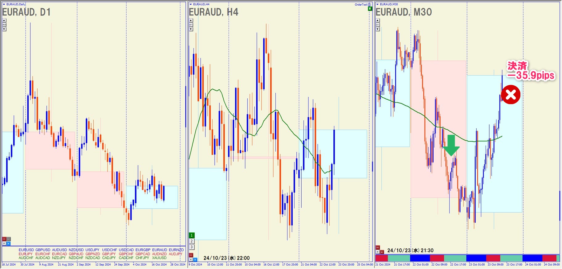 2024.10.22(火)21:00 EURAUD ショート -35.9pips