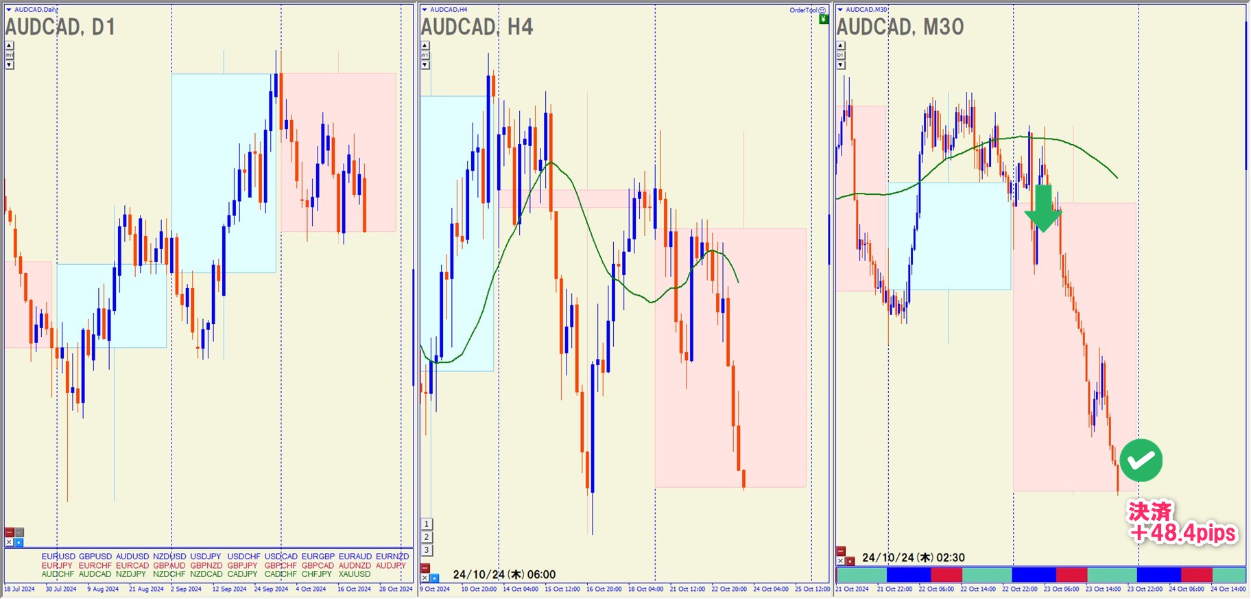 2024.10.23(水)10:00 AUDCAD ショート +48.4pips