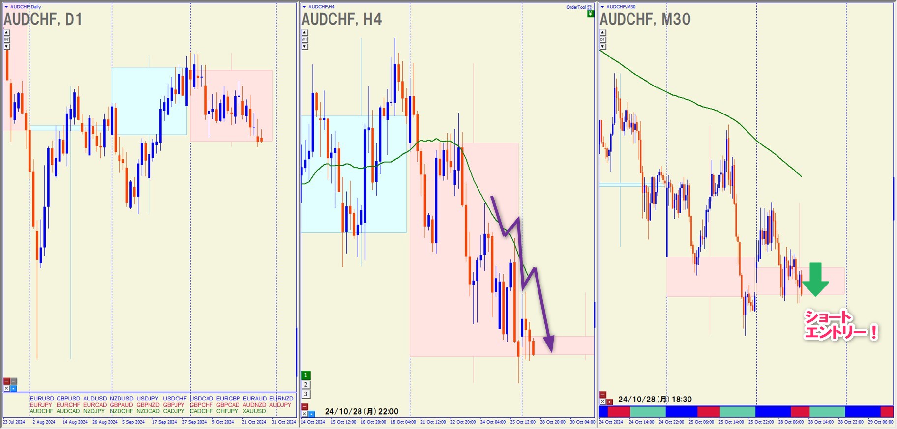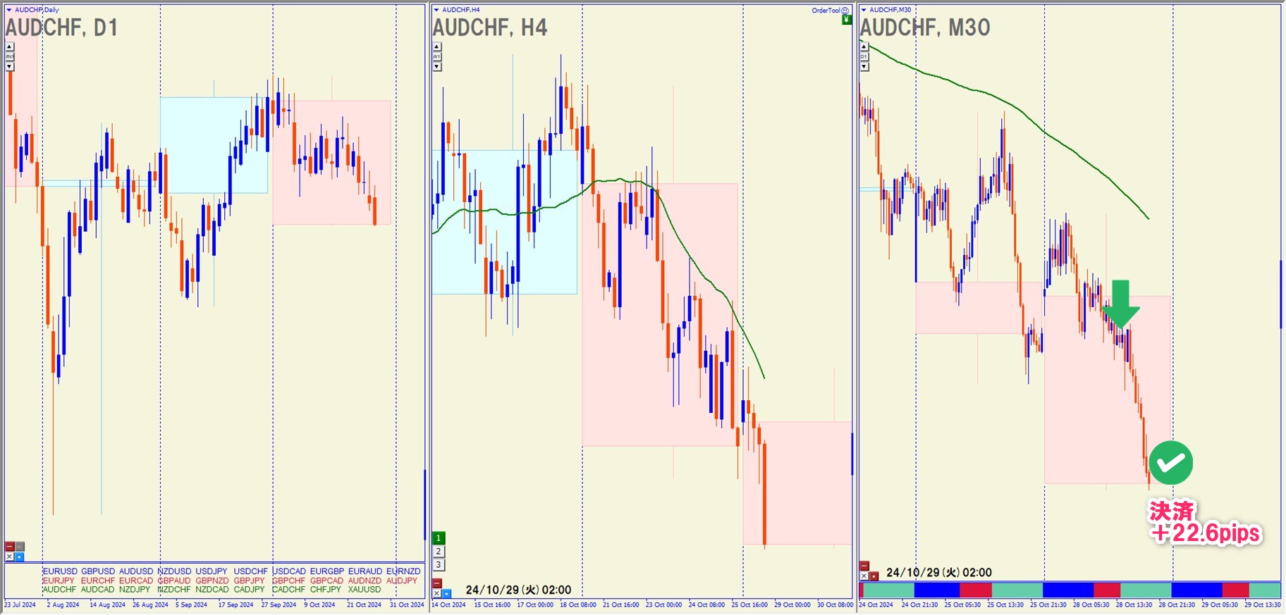 2024.10.28(月)18:30 AUDCHF ショート +22.6pips