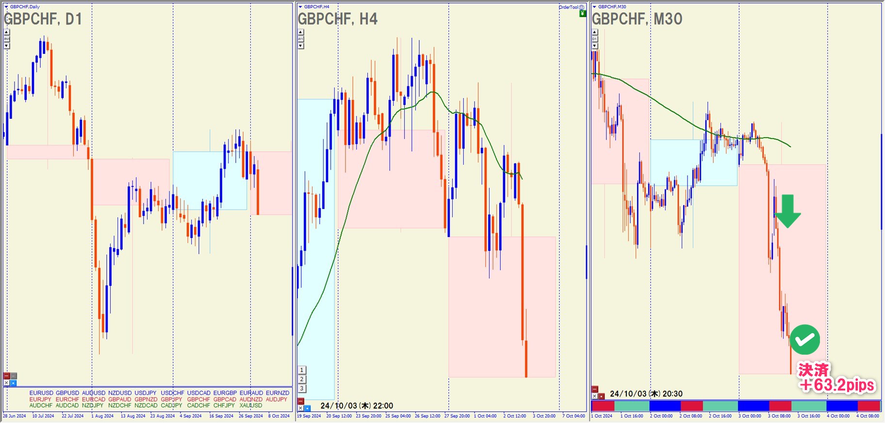 2024.10.3(木)16:30 GBPCHF ショート +63.2pips