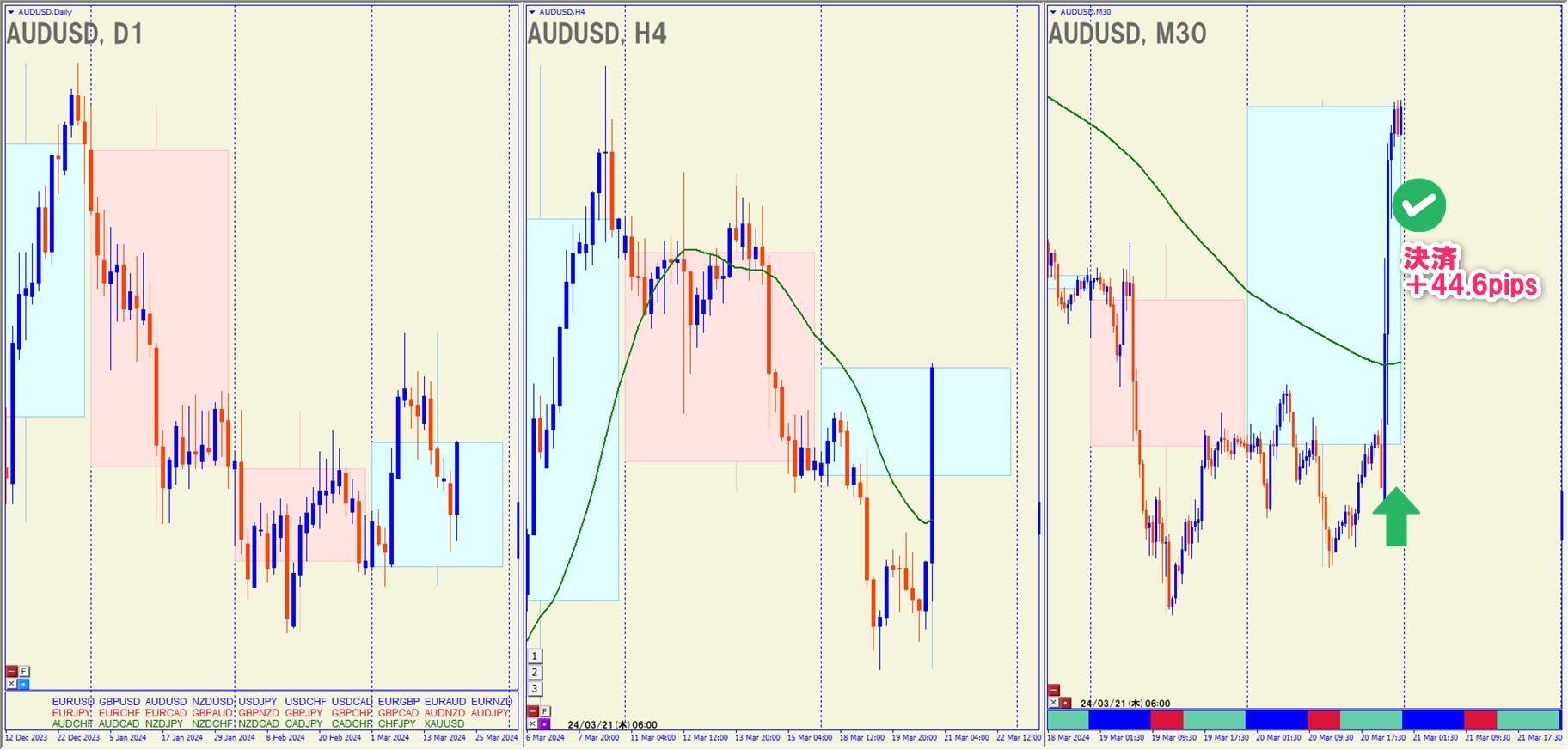 2024.3.20(水)27:00 AUDUSD ロング +44.6pips