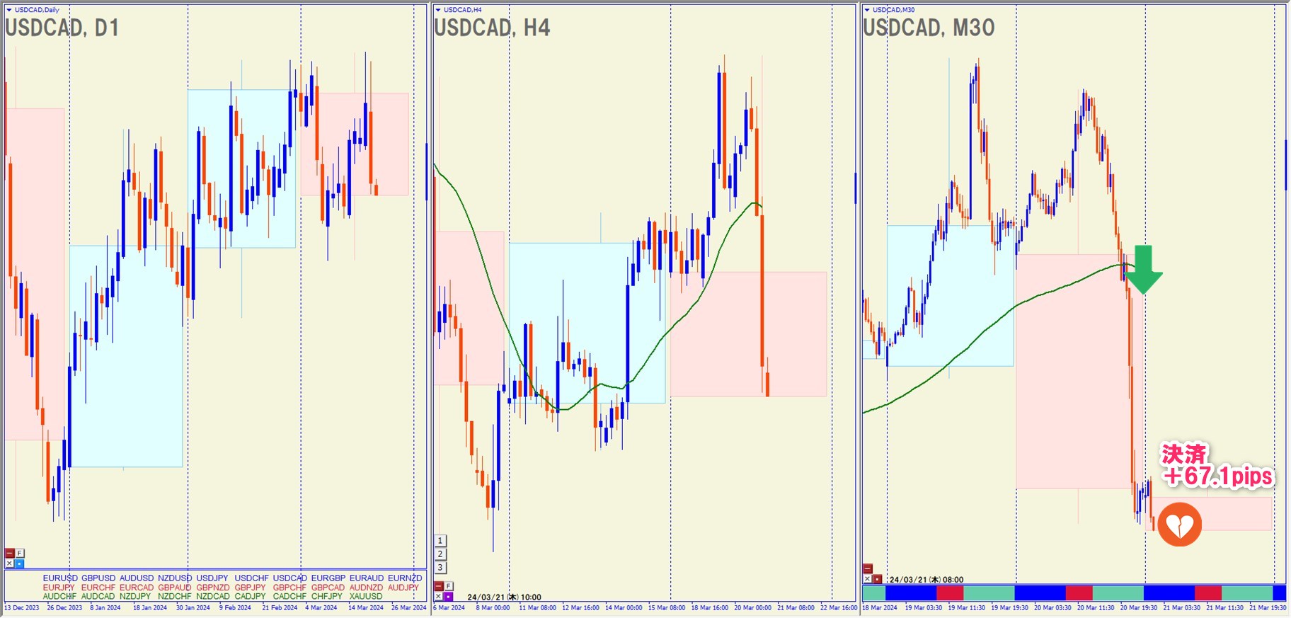 2024.3.20(水)27:00 USDCAD ショート +67.1pips