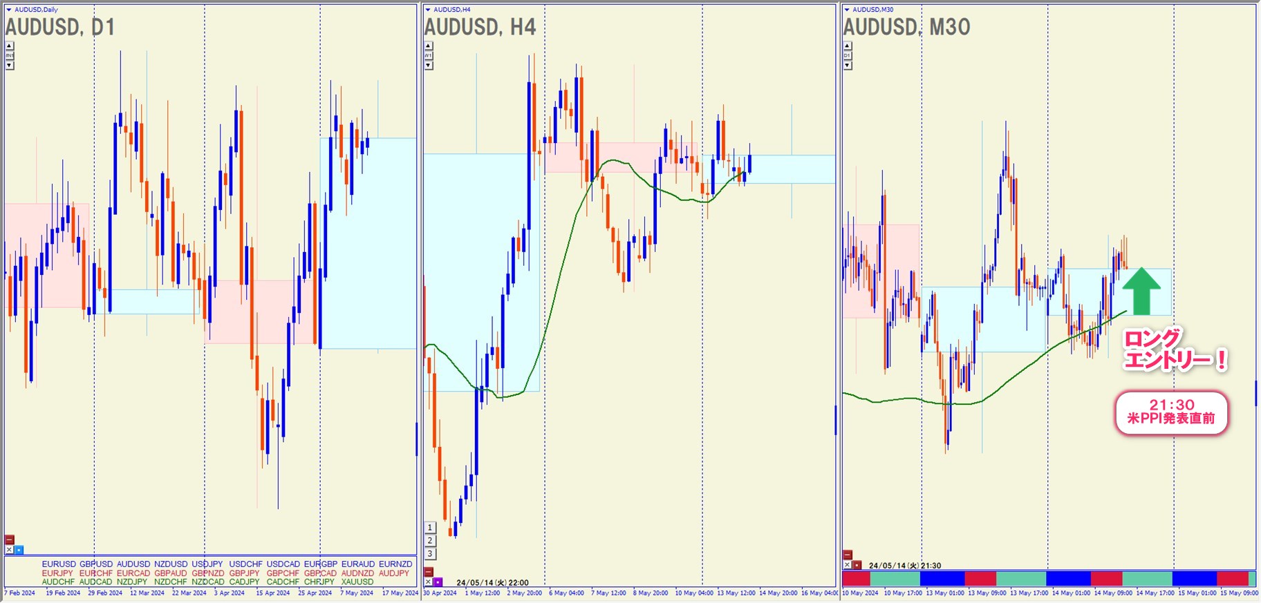 2024.5.14(火)21:30 AUDUSD ロング(米PPI) -11.8pips
