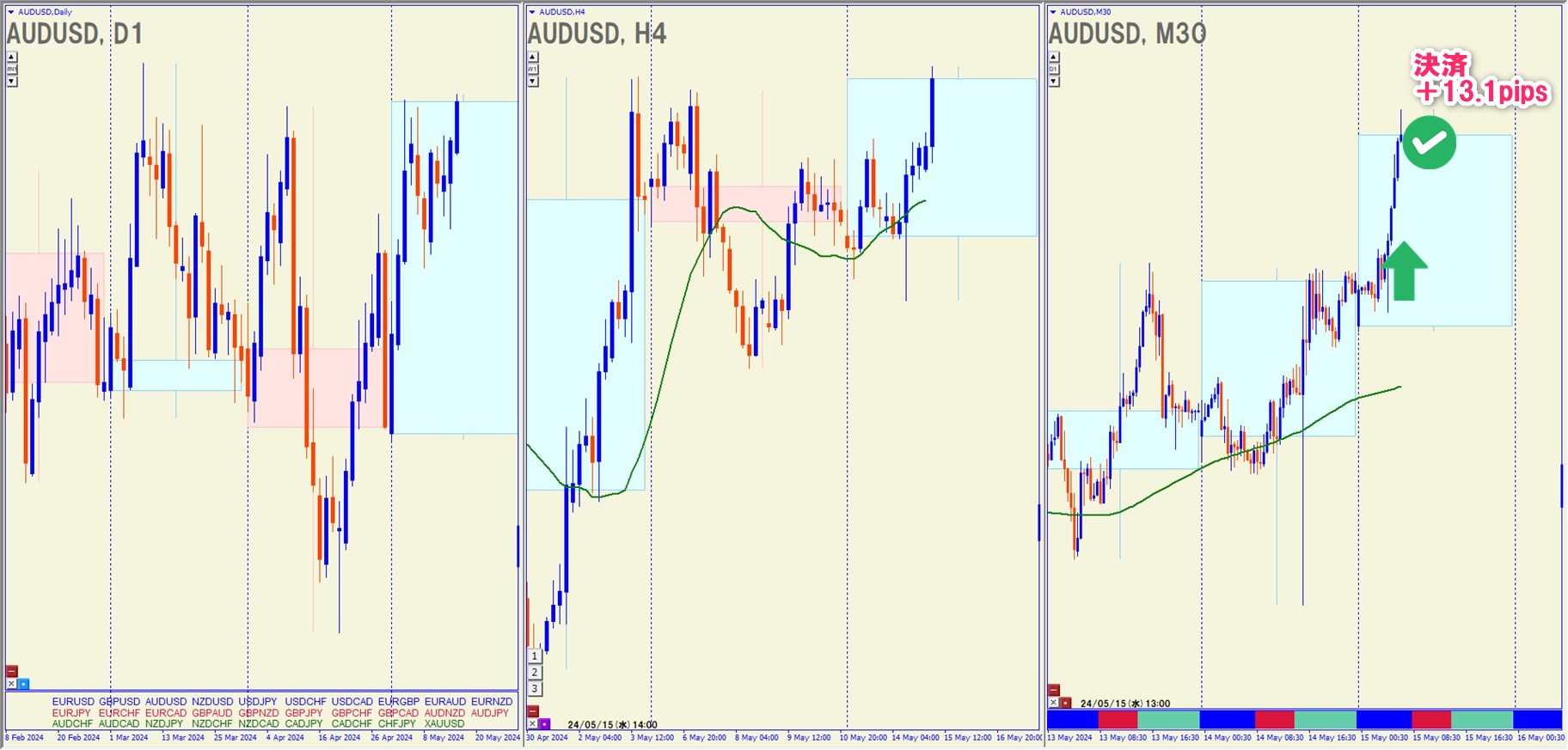 2024.5.15(水)11:00 AUDUSD ロング +13.1pips