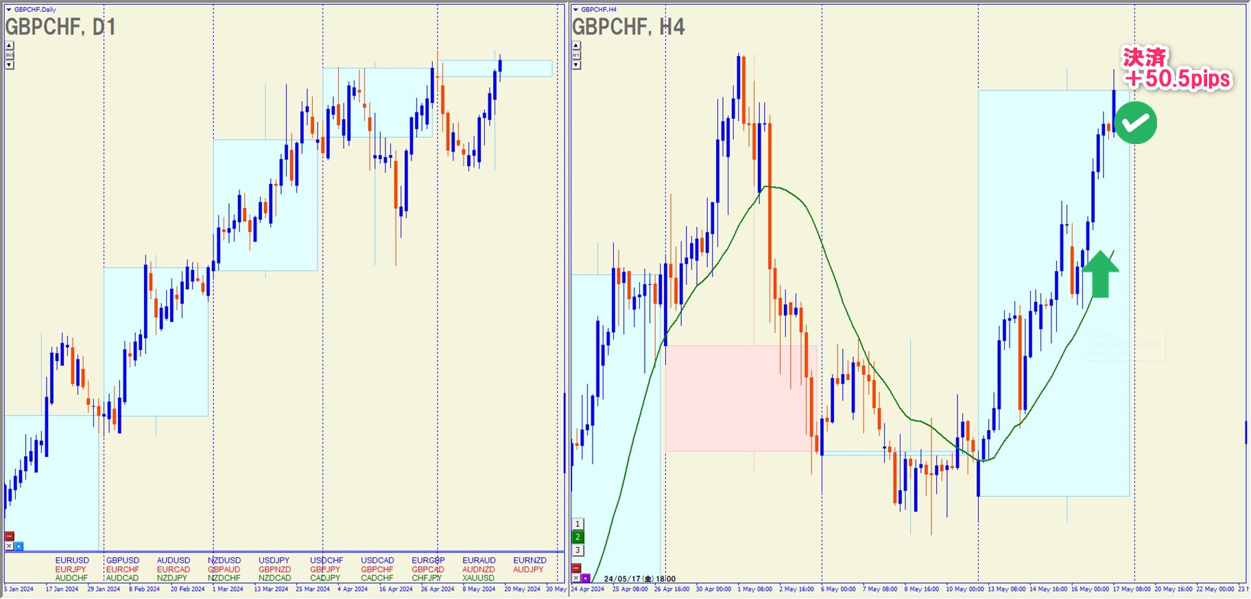 2024.5.16(木)18:00 GBPCHF ロング +50.5pips
