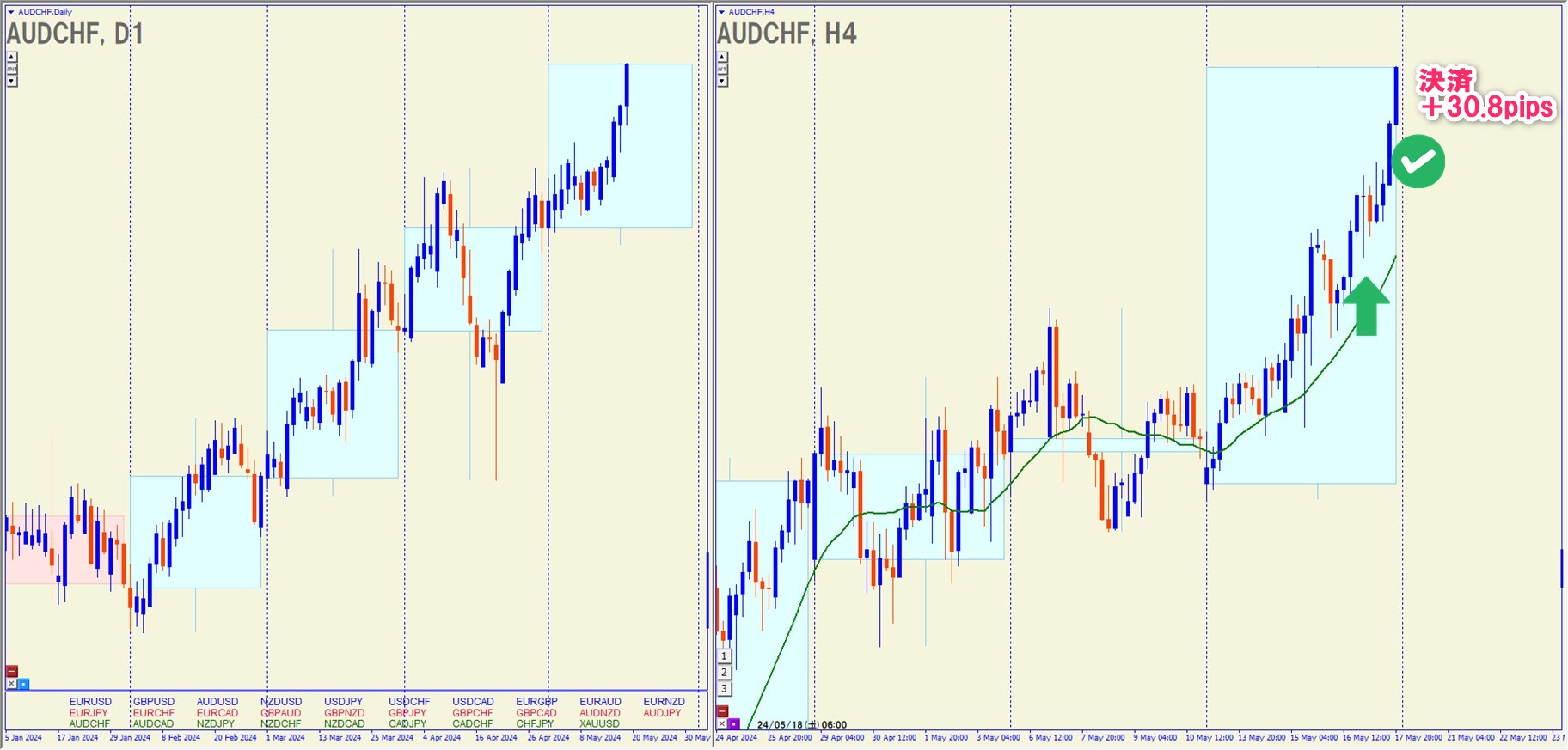2024.5.16(木)22:00 AUDCHF ロング +30.8pips