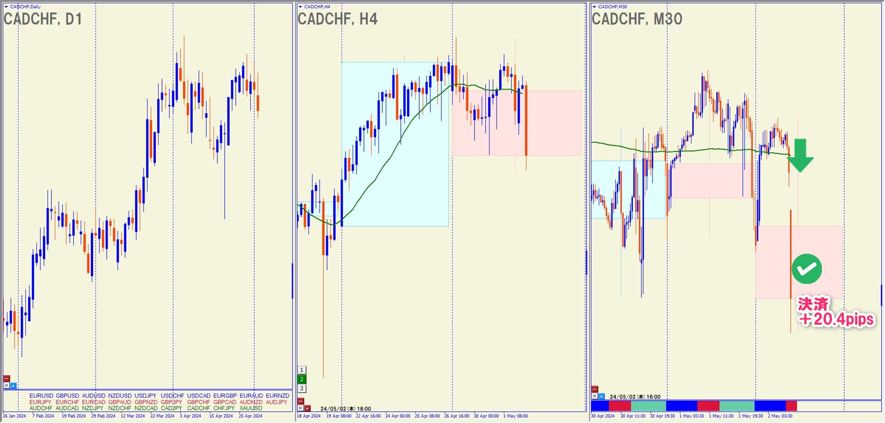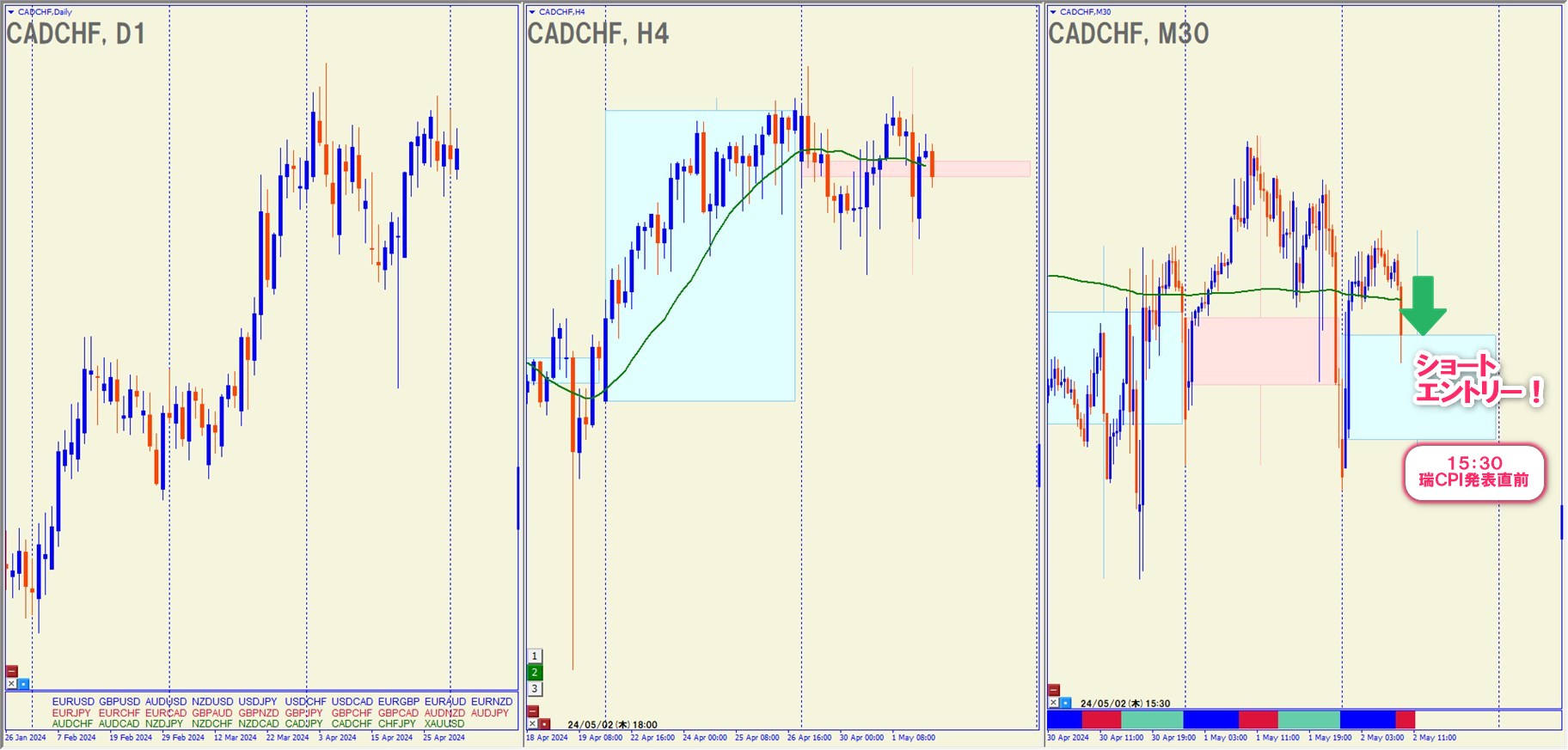 2024.5.2(木)15:30 CADCHF ショート(瑞CPI) +20.4pips