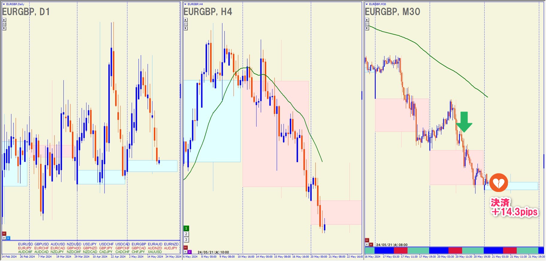 2024.5.20(月)18:00 EURGBP ショート +14.3pips