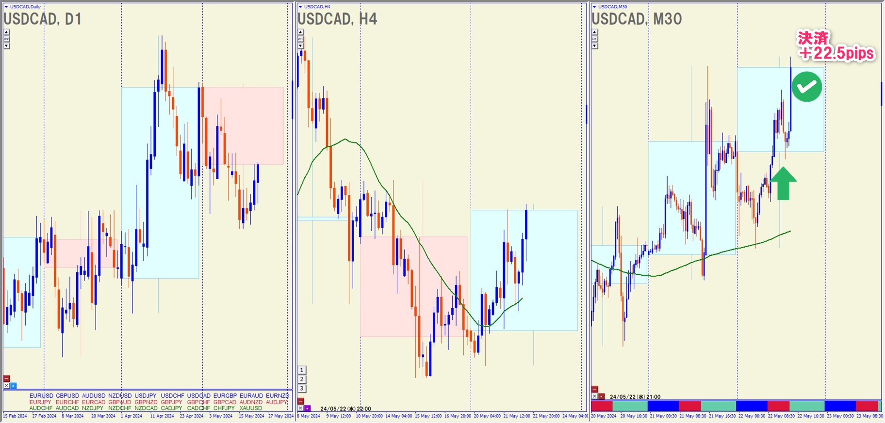 2024.5.22(水)15:30 USDCAD ロング +22.5pips