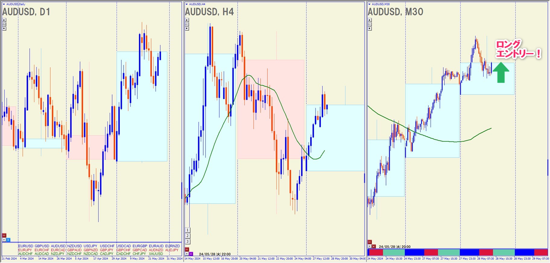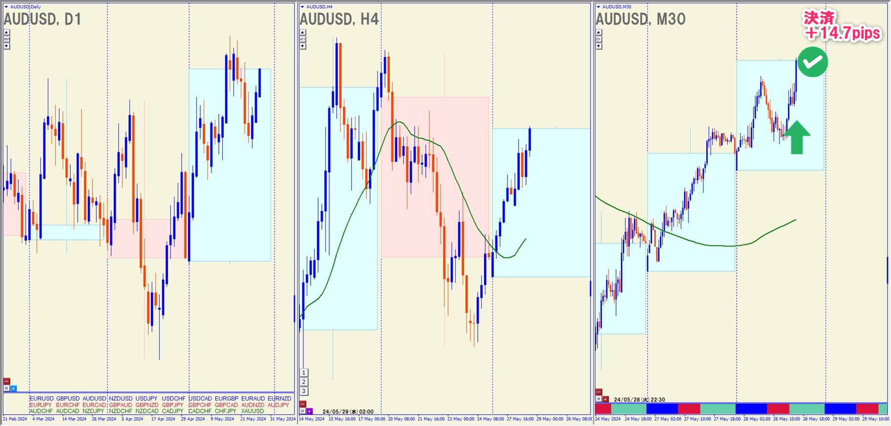 2024.5.28(火)20:00 AUDUSD ロング +14.7pips