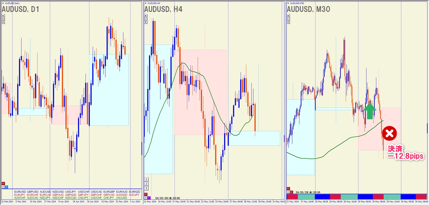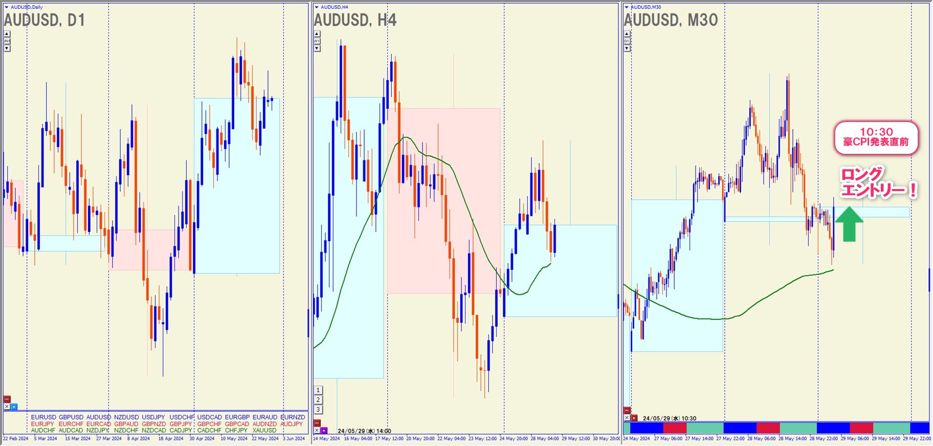 2024.5.29(水)10:30 AUDUSD ロング(豪CPI) -12.8pips