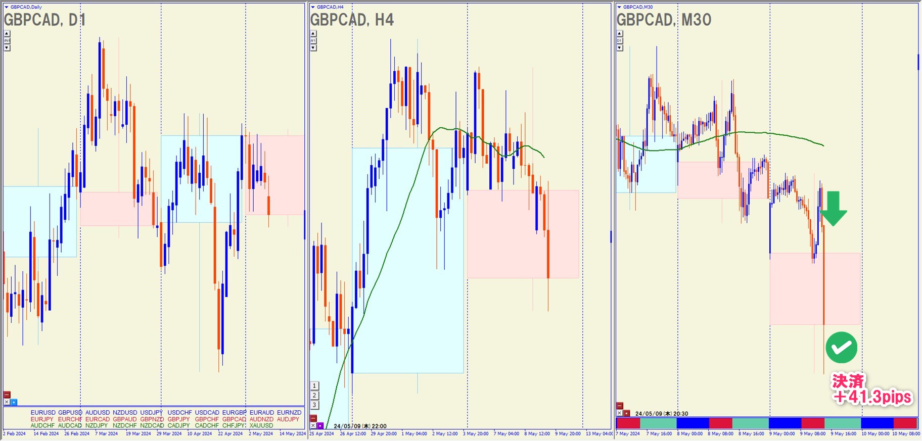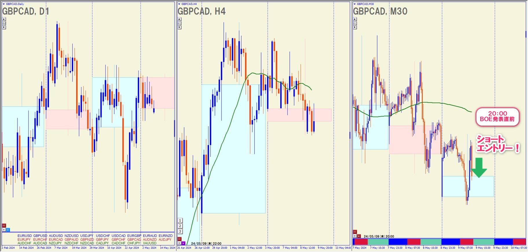 2024.5.9(木)20:00 GBPCAD ショート(BOE) +41.3pips