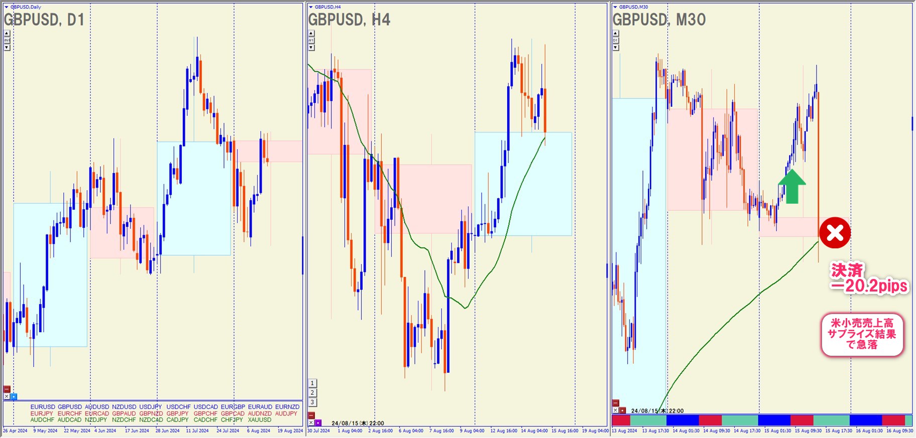 2024.8.15(木)14:00 GBPUSD ロング -20.2pips