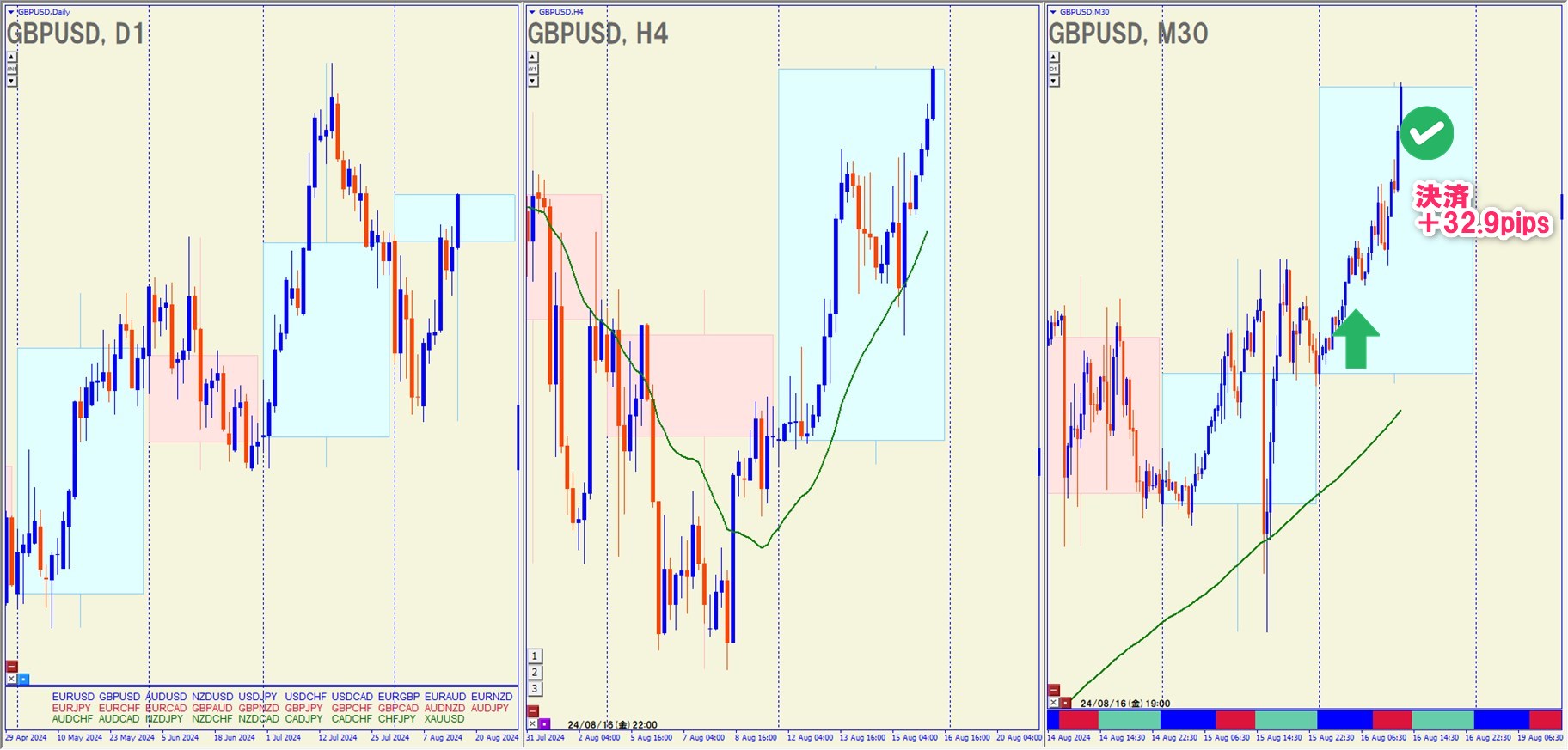 2024.8.16(金)10:00 GBPUSD ロング +32.9pips