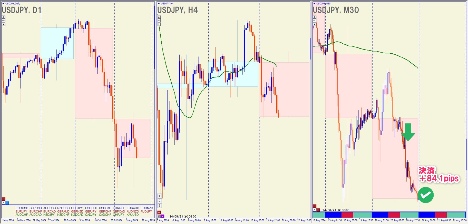 2024.8.20(火)22:00 USDJPY ショート +84.1pips